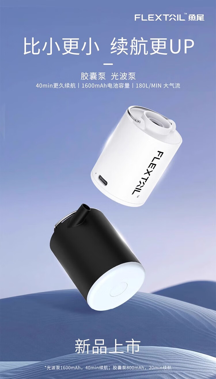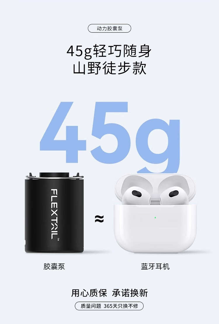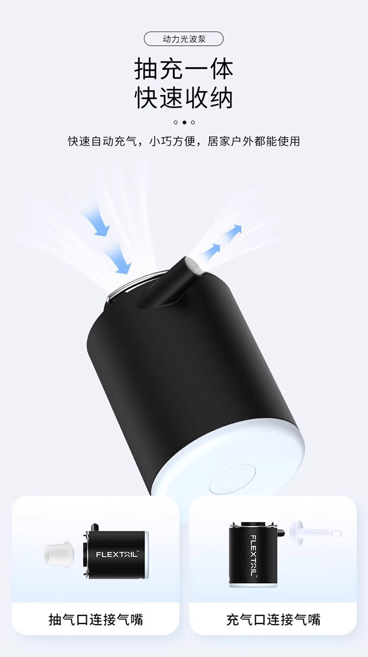 FLEXTAILGEAR鱼尾户外便携充气泵轻量气垫床真空袋游泳圈抽充两用mini电动气泵 45g轻量化胶囊气泵(黑色)