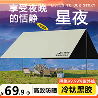 野徒者天幕黑胶帐篷天幕户外露营装备便携全套遮阳棚蝶形八角天幕旅行 黑胶3*3米【9㎡4-6人】 新升级加厚黑胶