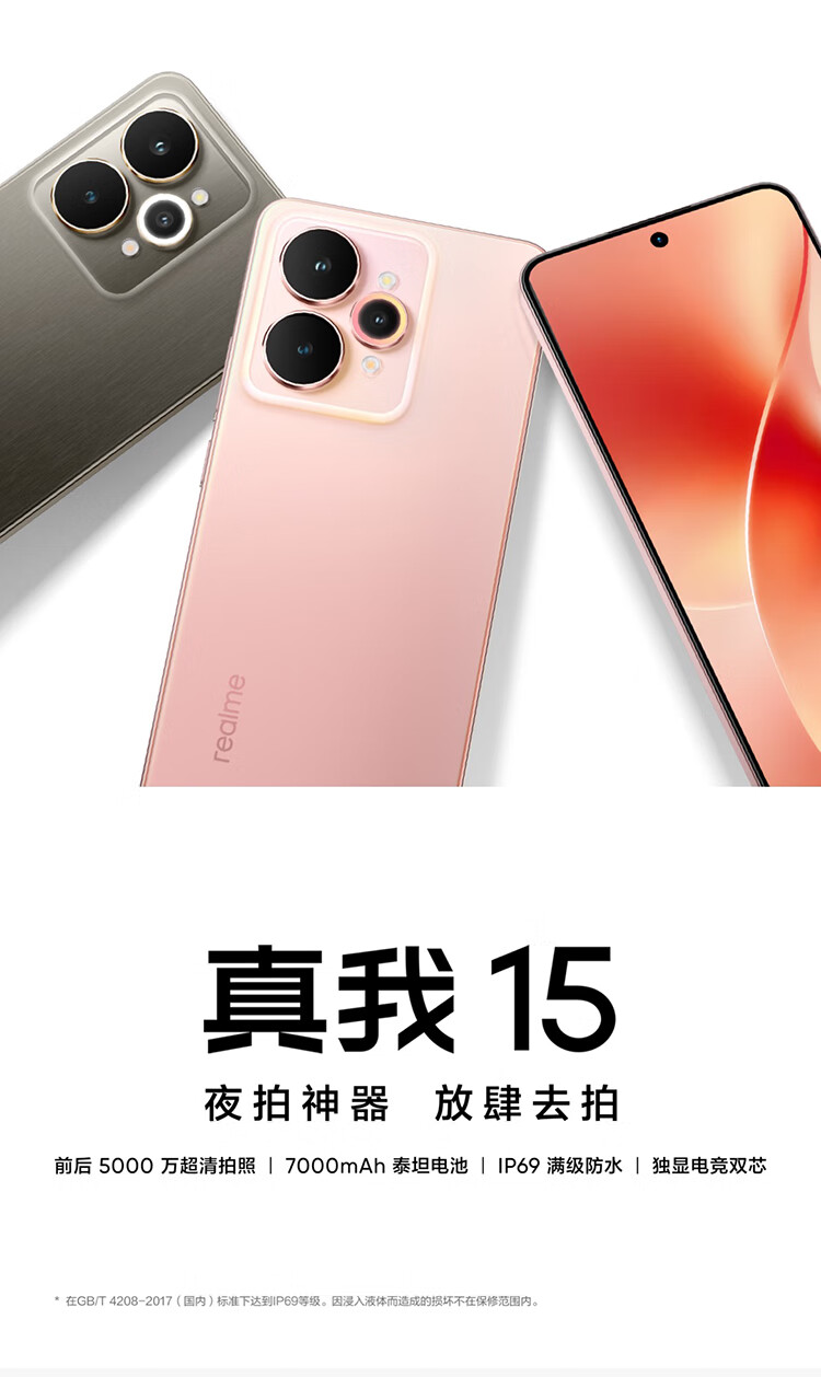 realme真我15 前后5000万超清拍摄 7000mAh长续航 IP69满级防水拍照手机 真我15 8GB+256GB 钛灰