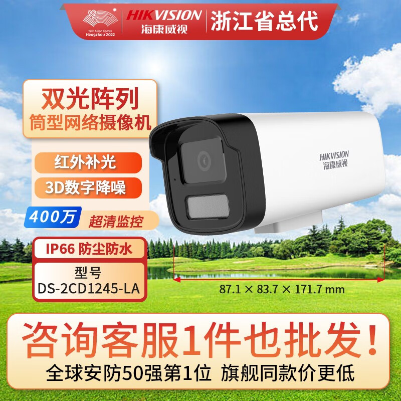 海康威视400万白光全彩POE网络摄像机室外防水监控DS-2CD1245-LA 海康双光全彩400万+录音POE枪机 8mm
