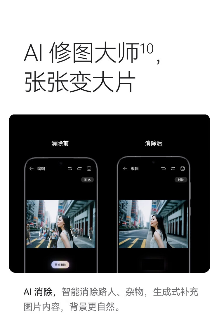 AI大模型,轻薄,LTPO屏幕,高频PWM调光,全焦段影像,潜望式长焦,防水防尘,无线充电,NFC,大底主摄