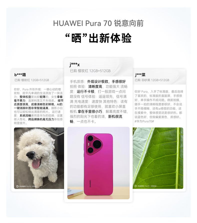 华为(HUAWEI)Pura 70 5G手机持久续航新品旗舰正品国行全网通补贴500 Pura70北斗卫星樱玫红 12G+1T 赠运费险详情咨询客服