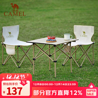 骆驼(CAMEL)户外折叠桌便携式露营桌椅套装碳钢野餐桌子蛋卷桌夜市摆摊 桌椅3件套 赠收纳袋 3009 鹅黄/米白