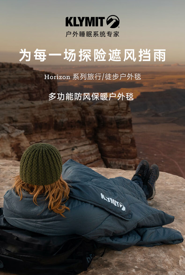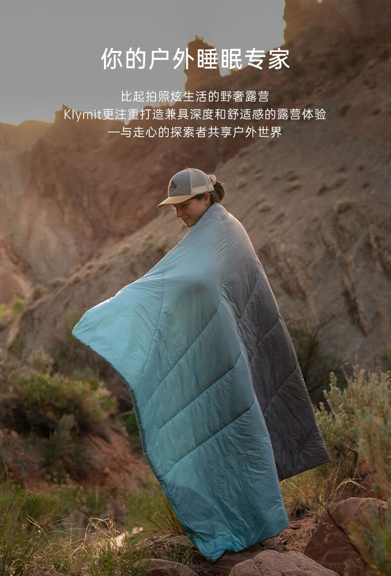 Klymit Homestead超奢华舒适保暖毯羊毛感摇粒绒内里户外防风睡袋 超奢华舒适保暖毯 (灰蓝色)