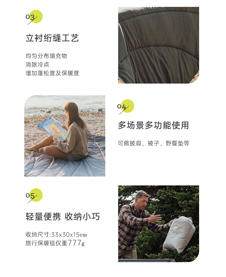 Klymit Horizon多功能户外毯成人秋季便携舒适防水披肩旅行保暖毯 奢华保暖毯-极光白
