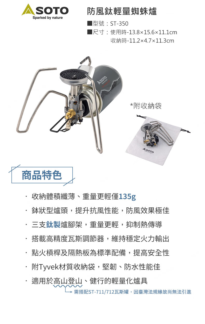 SOTO钛蜘蛛炉st-350超轻炉头户外露营登山野炊轻量化便携炉具 ST-350 钛蜘蛛炉(附收纳袋)