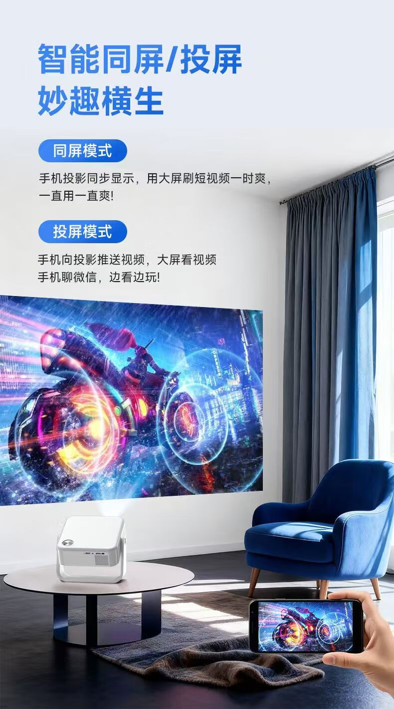 屏幕比我想象中的大,晚上看反正非常清楚,声音也不错,投屏也能正常连接,这个价位真的非常划算了,相等于几百块钱搞了个家庭影院,十分有性价比