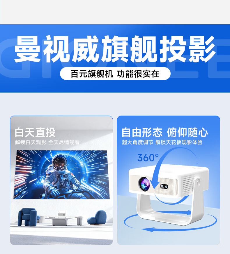曼视威2025新款4K家用投影仪智能高清一体机家庭影院 C6云台旗舰款白色 5年质保+30天试用+365天免费换新