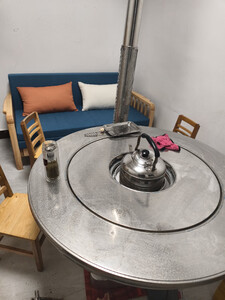 璞灶旺冬季柴火灶加厚加高农村取暖炉烧柴家用节能柴煤两用多功能回风炉 1米圆桌不锈钢(柴火炉)