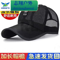山头林村夏季户外遮阳网帽 男女士加长帽檐皮标棒球帽简约透气防晒帽子 可 黑色