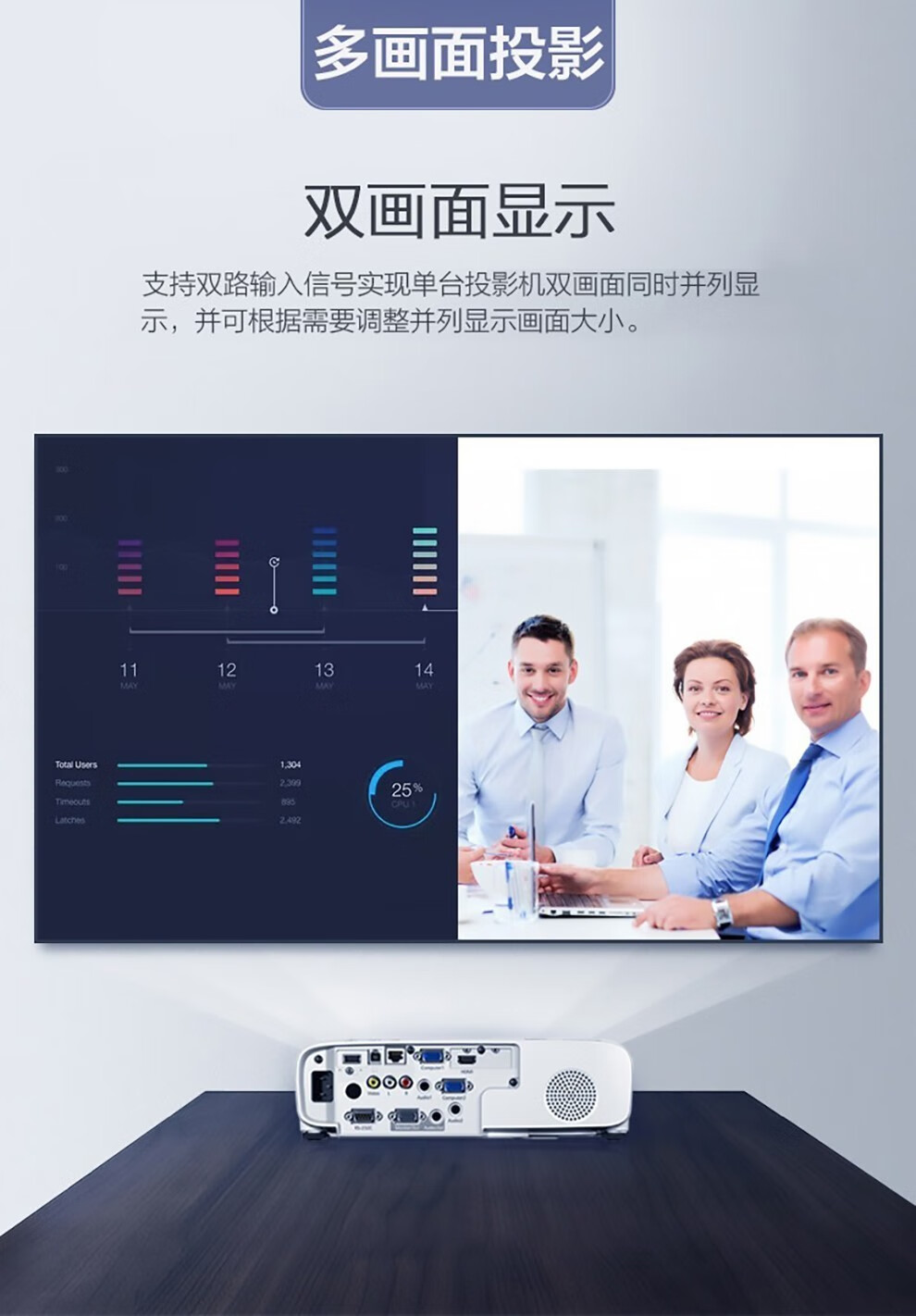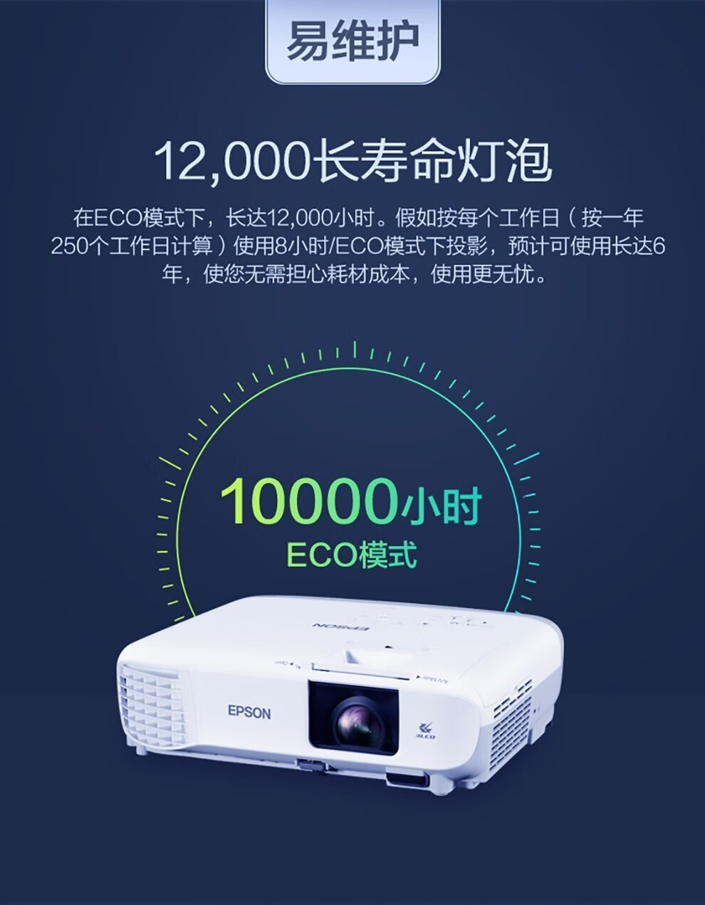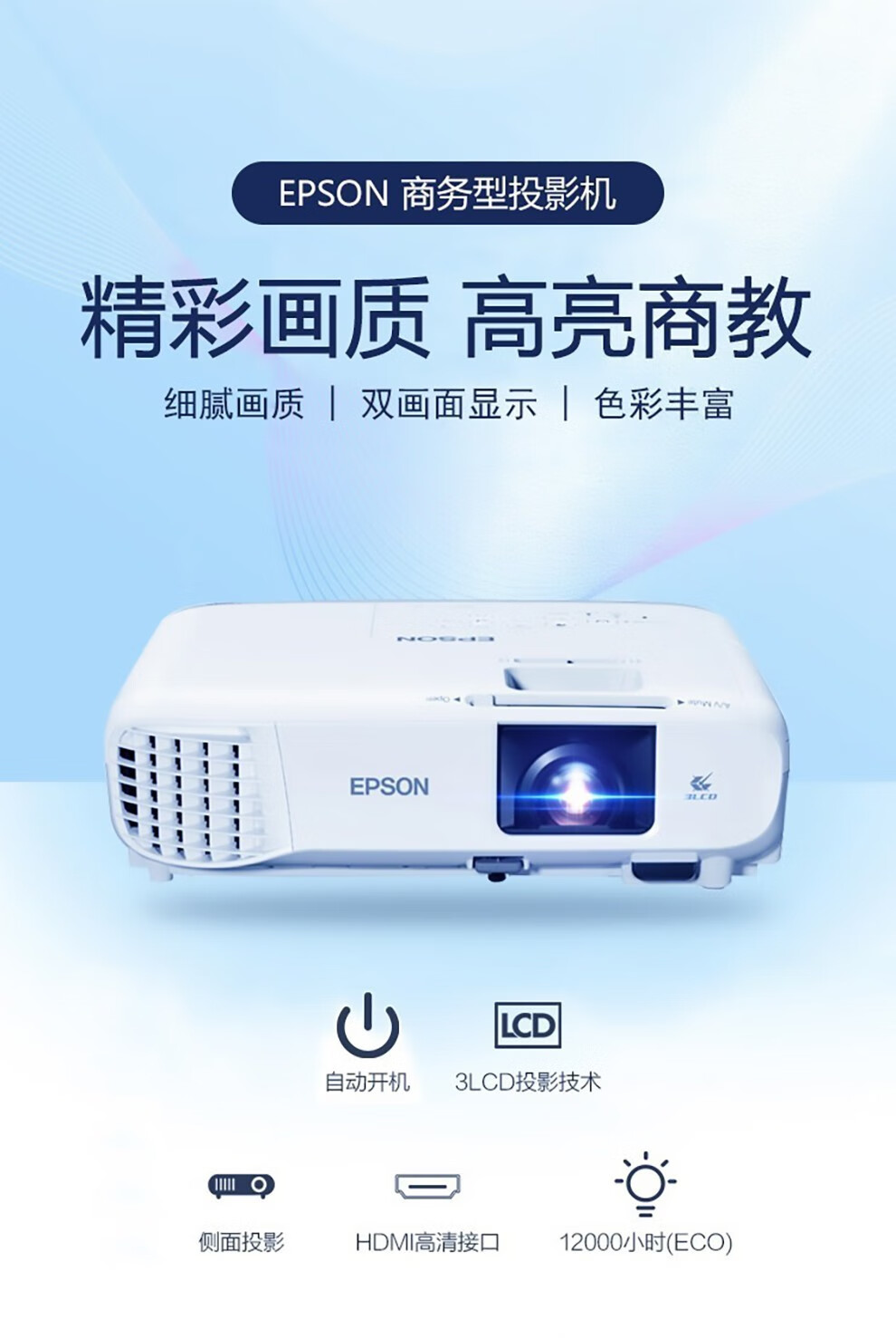 爱普生办公家用投影仪CB-X39 108 X05高清4K无线1080P商务投影仪机 CB-98H(3000流明 家用办公)