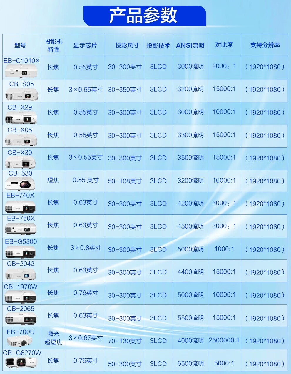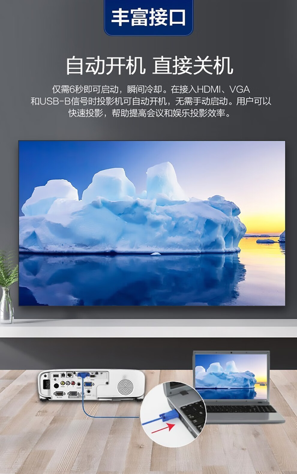 爱普生(EPSON)家用办公商用3LCD 高亮1080P无线智能4K长焦超短焦工程二手投影仪 CB-S05(3200流明1万5对比度)