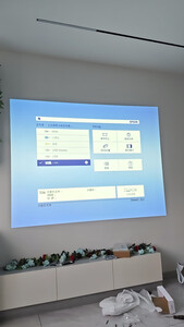 犹豫了好久才入手了这款投影,拿到手的那一刻后悔自己没能早点做决定!因为房间的遮光效果不错,白天不窗帘拉起来投影效果也很好!而且声音效果也很可!真心好用,功能齐全,侧投、对焦都很灵敏,晚上投影非常清晰,开机秒开无广告,系统人性化不卡顿,链接手机秒变大屏,看着太舒服, 也没有卡顿,非常满意!!
