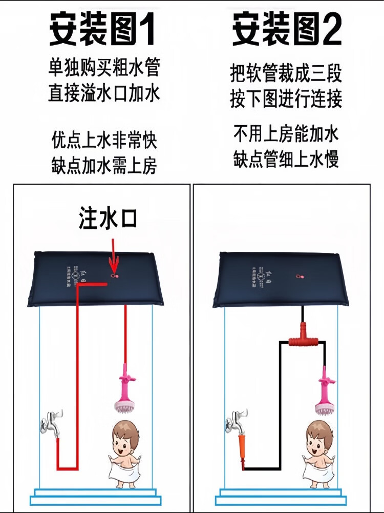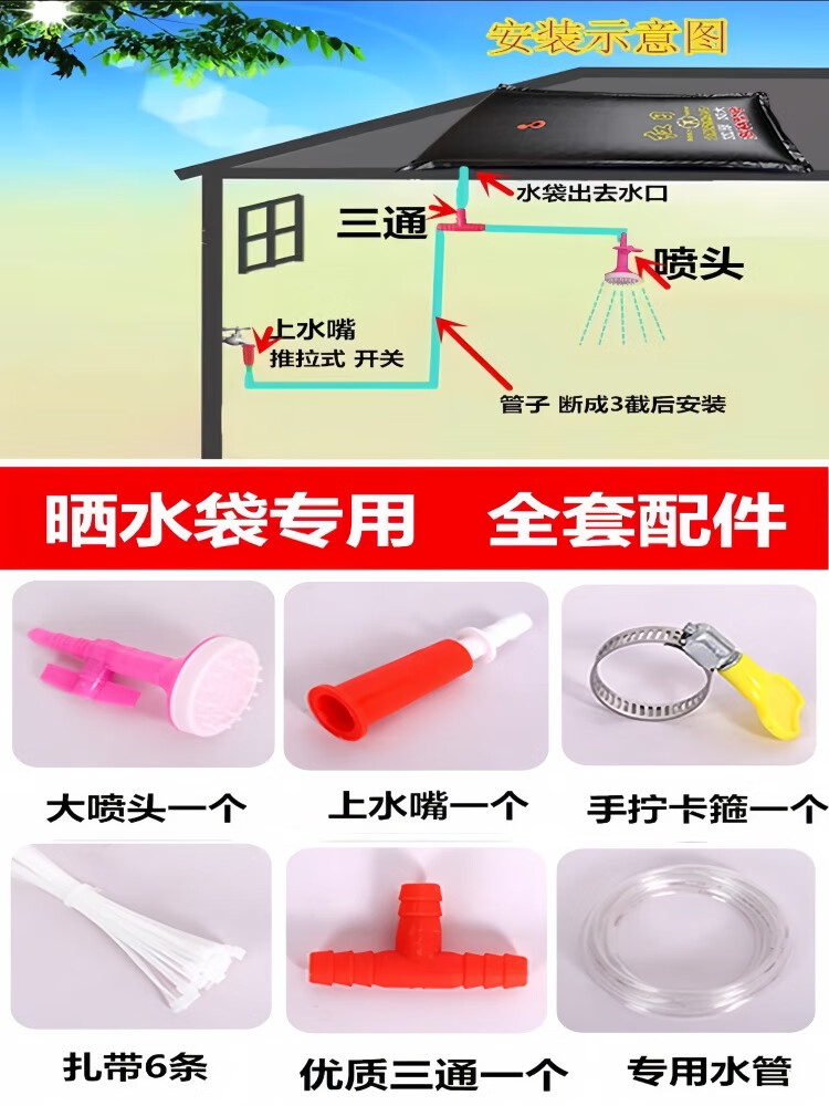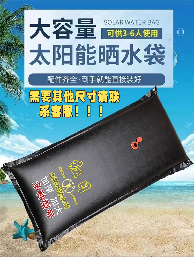 元族太阳能热水袋户外家用洗澡大号农村夏天洗澡神器大容量加厚大沐浴 1米*0.75加厚袋+5米管+配件