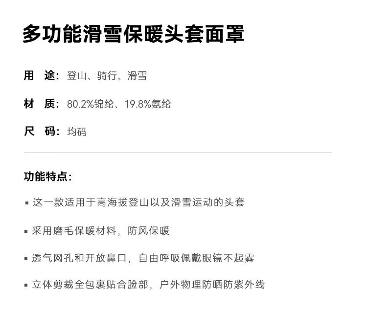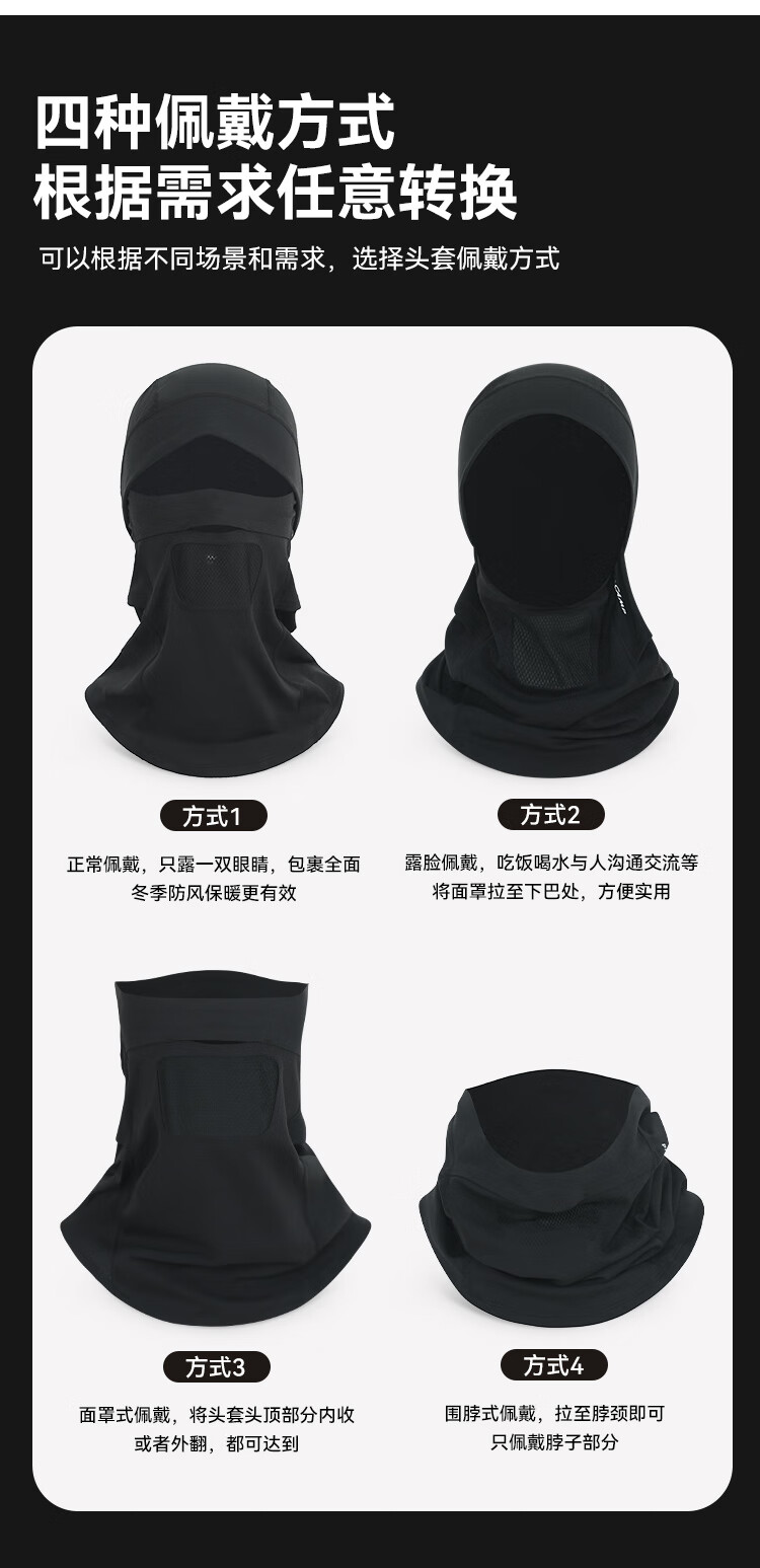 这款头套真的很实用,套头设计方便又贴合,戴着不闷热,防晒效果也不错。骑车时能挡住风沙,面料柔软舒服,洗了几次也没变形。性价比挺高的。