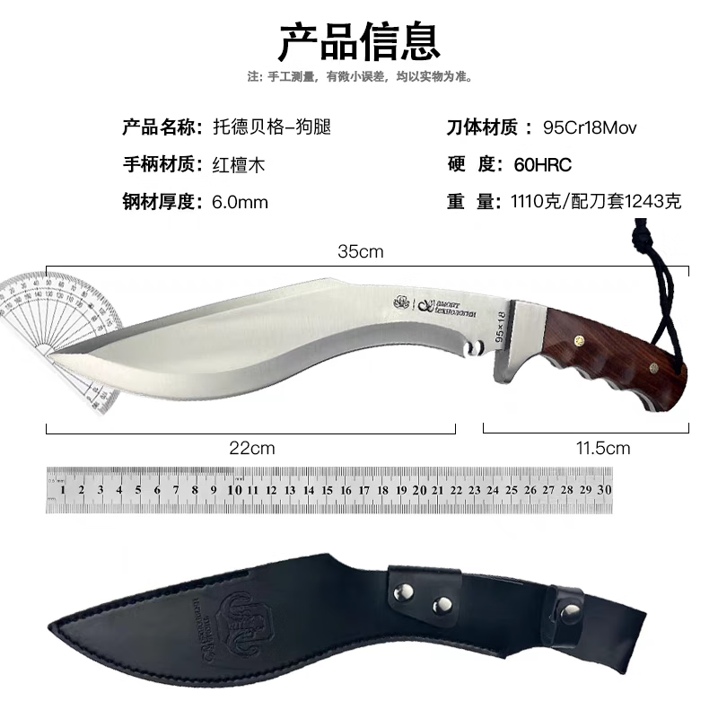 是把好刀!款式,长短,份量都不错,钓鱼时砍过几个树叉没发现有损伤,刀把也好看,握着防滑舒适,刀鞘也挺漂亮,整体看着用着感觉舒服,协调,霸气。