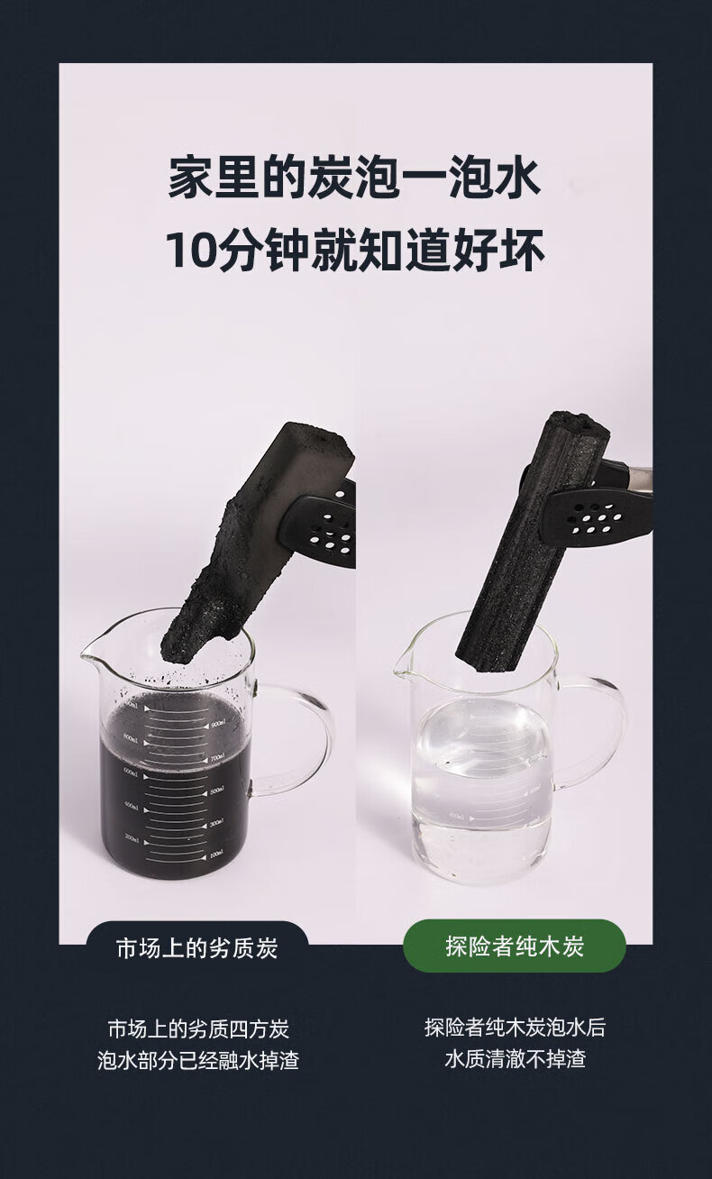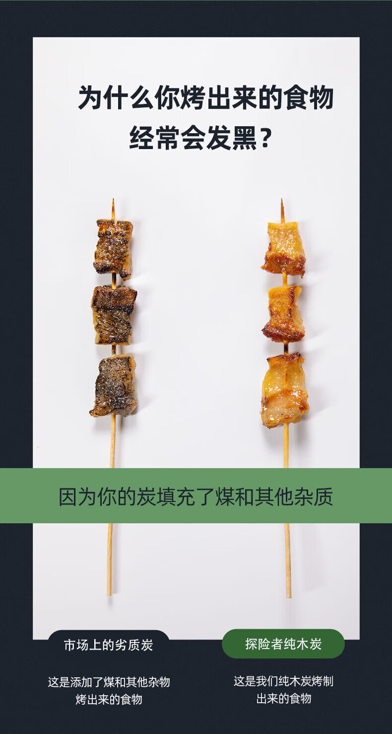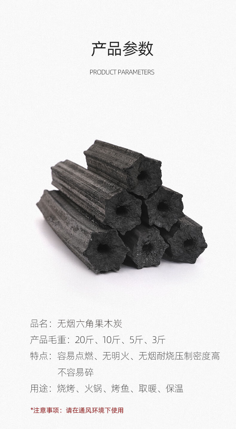 探险者木炭烧烤炭家用无烟果木碳围炉煮茶竹炭机制炭速燃耐烧炭块 【3斤】无烟六角纯木炭