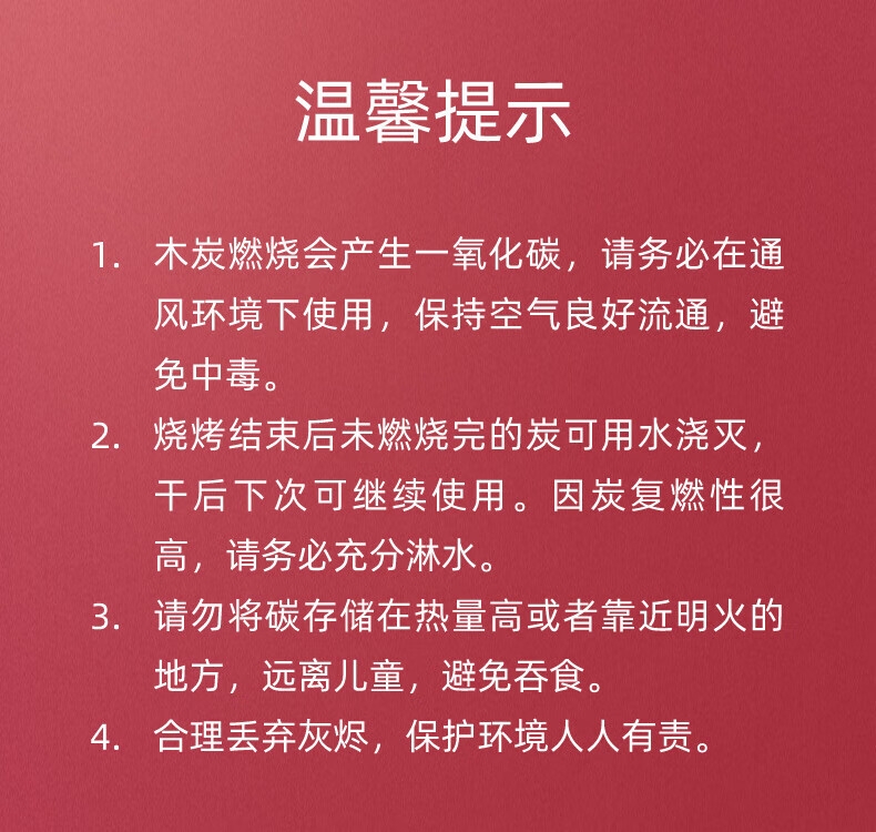 买回来都不知道咋用,还好客服很热情,告诉我咋生火,放几块炭就可以烤火了,家人也不用怕冷了。买炭回来就是为了取暖用的,用着很满意,炭对我们这些农村人来说是真的很方便。