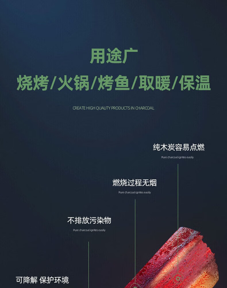 炭很给力👍啊!使用起来特别的简单方便,直接把炭放在炉子上去引燃,然后再放入烧烤炉里面,炭的温度很高,烤食物非常快,烤出来味道🥩特别的香,最主要就是没有什么烟。