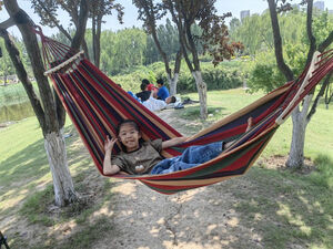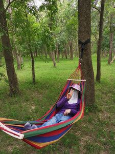 今天到槐林一游,打开包装,质量杠杠滴,我喜欢!系好吊床,躺在床上,绿色满眼,清风拂面,太惬意了!