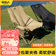 原始人户外折叠椅月亮椅露营折叠椅子折叠凳便携凳子钓鱼凳钓鱼椅 【加高卡其夹棉加厚】配收纳包