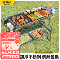 原始人烧烤炉家用烧烤架户外折叠不锈钢便携式炉子室内烤肉架子网 大号折叠款【304烤网】+8件套