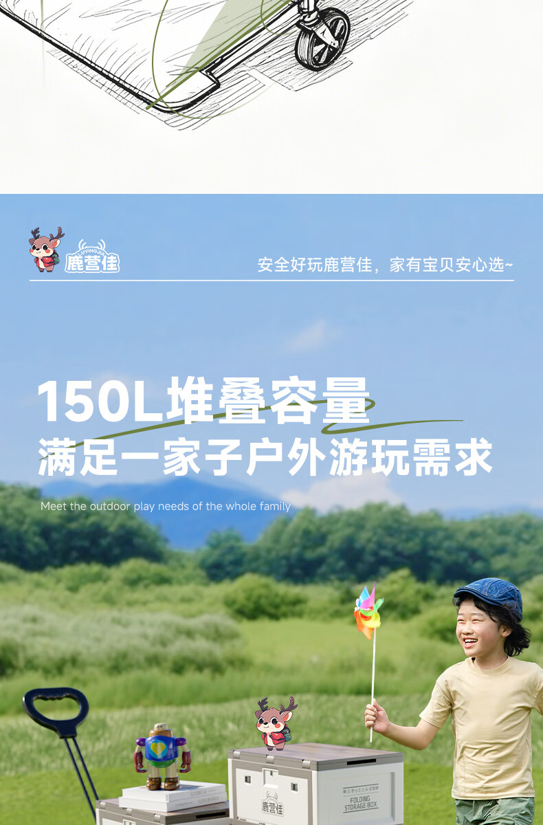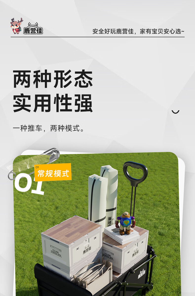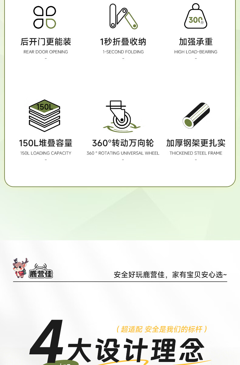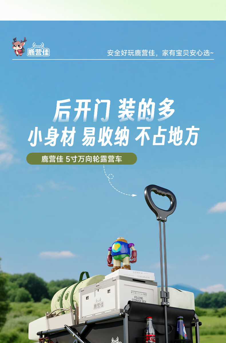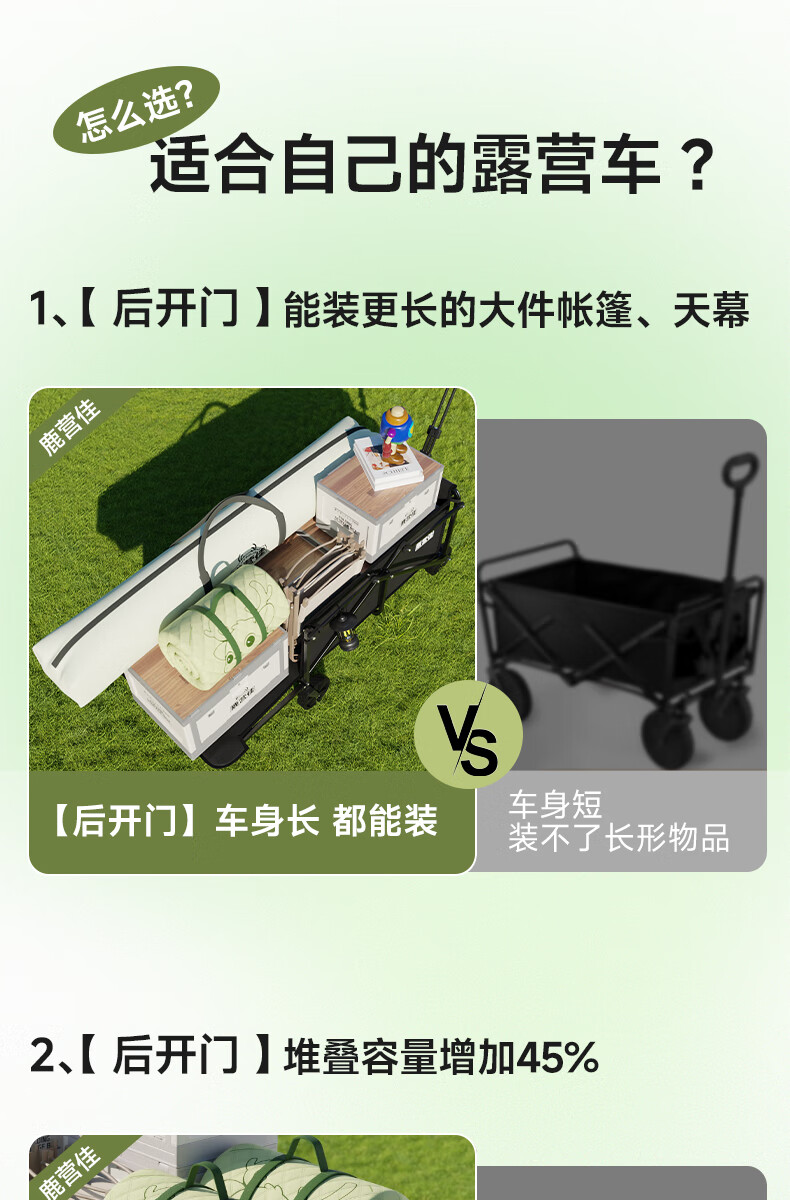 鹿营佳户外露营车可后开折叠推车营地车可收纳家用野营车大空间野餐车 8寸坦克轮-可后开 400L 有刹车