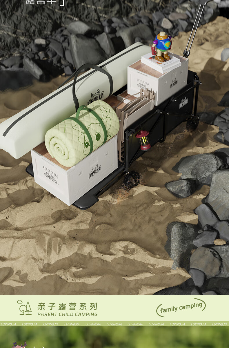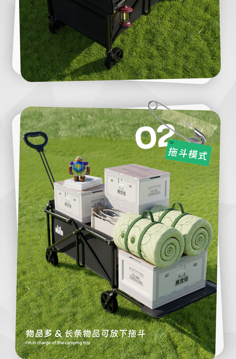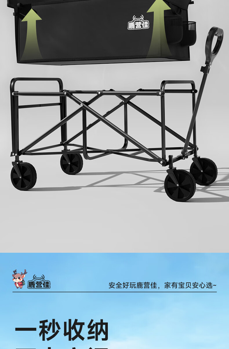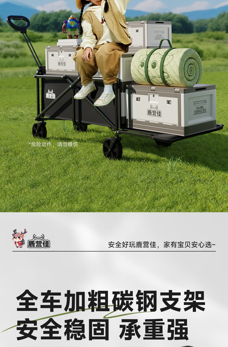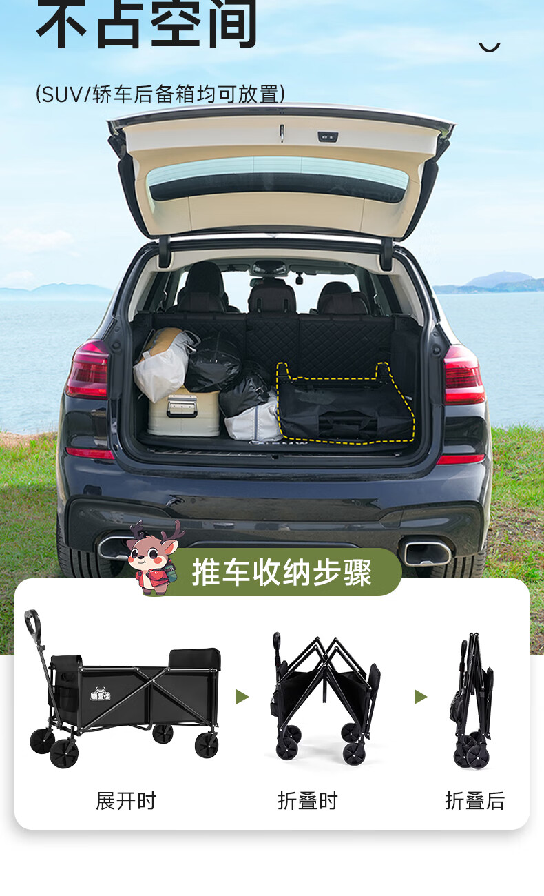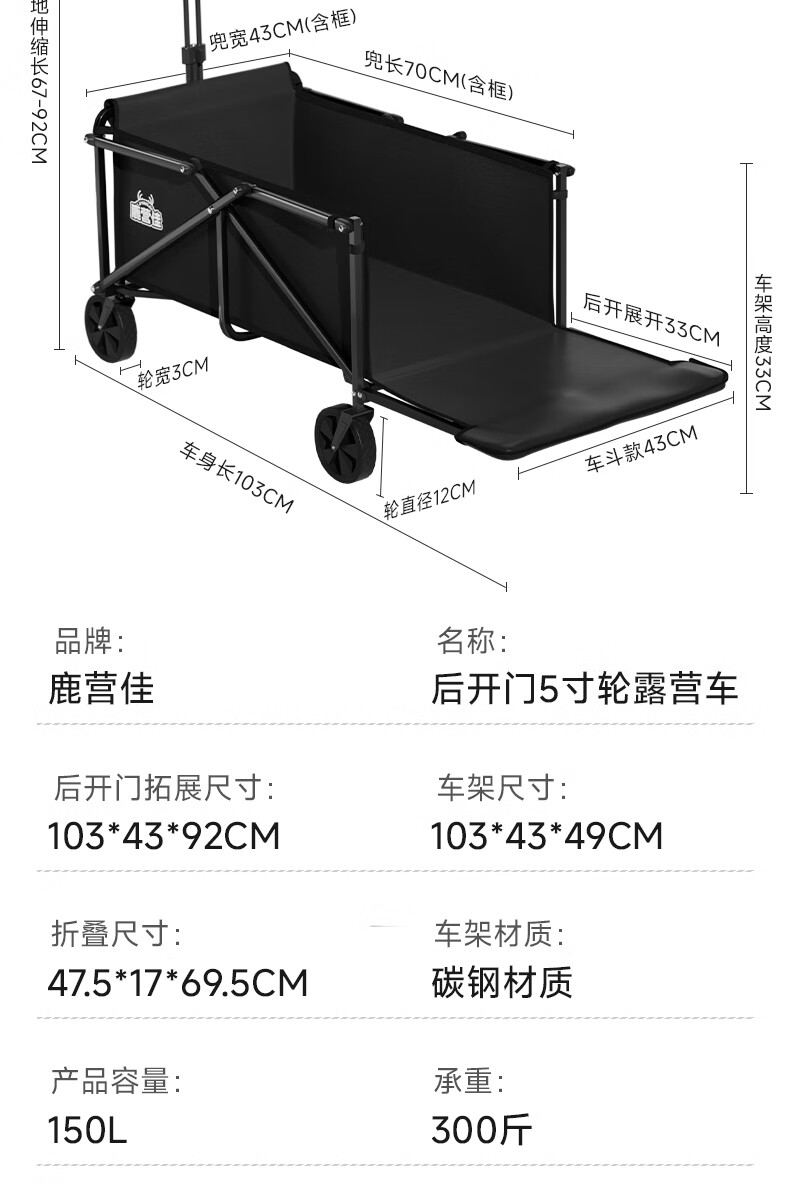 鹿营佳露营车后开拖斗儿童可躺可折叠户外拖车营地车野营车野餐车摆摊车 【加大越野款-后开车斗】露营好用-曜石黑 400L