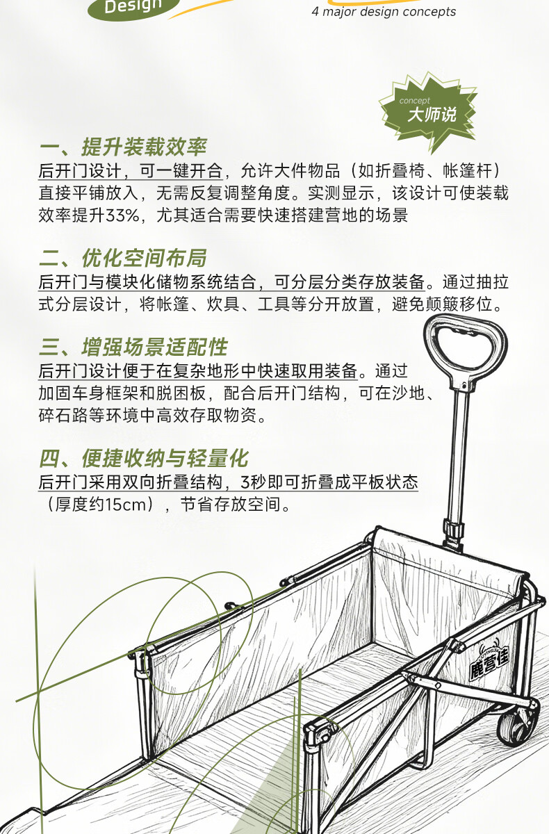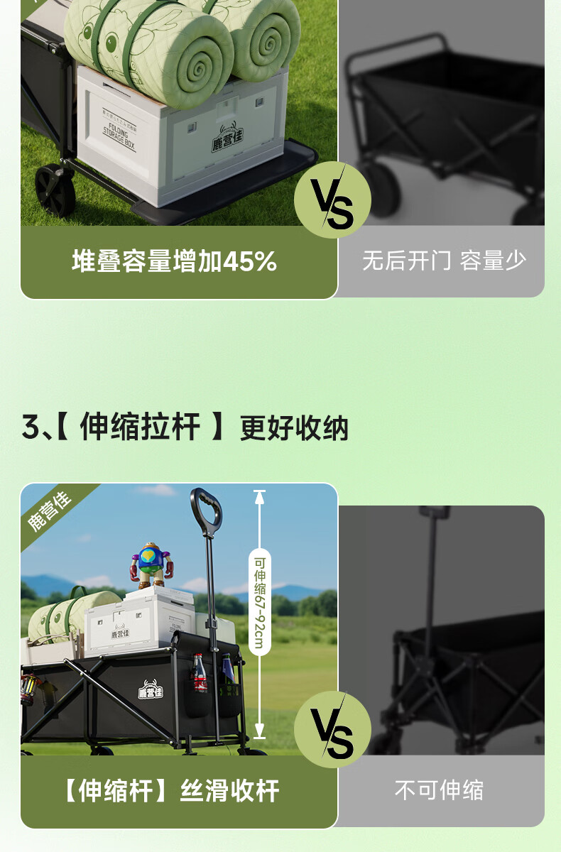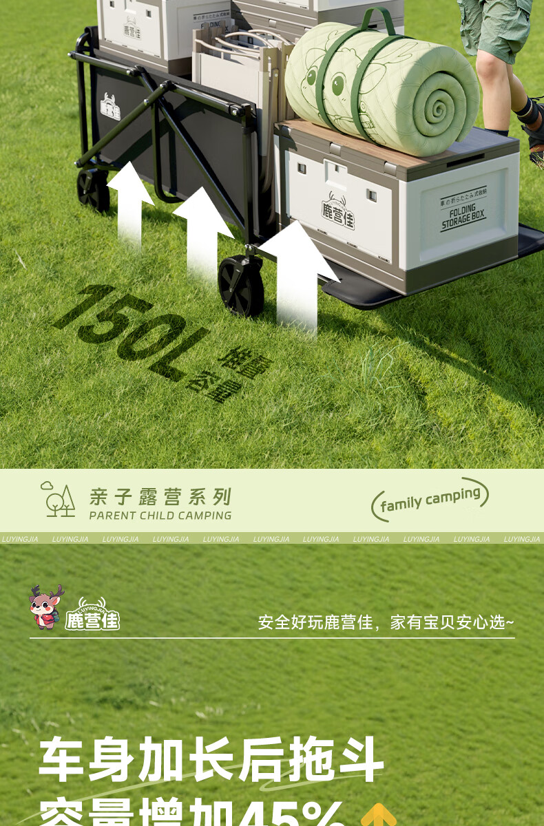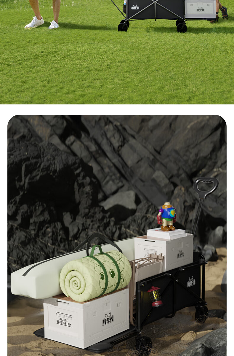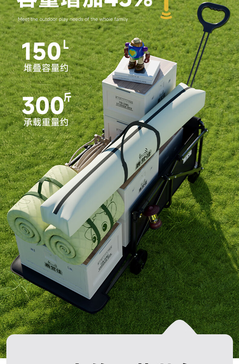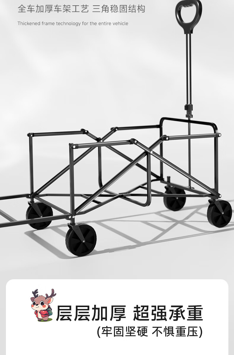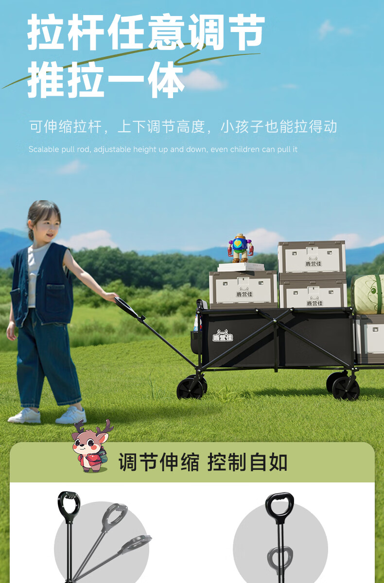 鹿营佳露营车后开拖斗儿童可躺可折叠户外拖车营地车野营车野餐车摆摊车 【加大越野款-后开车斗】露营好用-曜石黑 400L