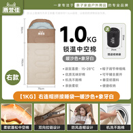 鹿营佳信封式睡袋户外成人加厚露营睡袋秋冬防寒可拼接双人四季通用 【1KG】右连帽拼接睡袋-棕白色