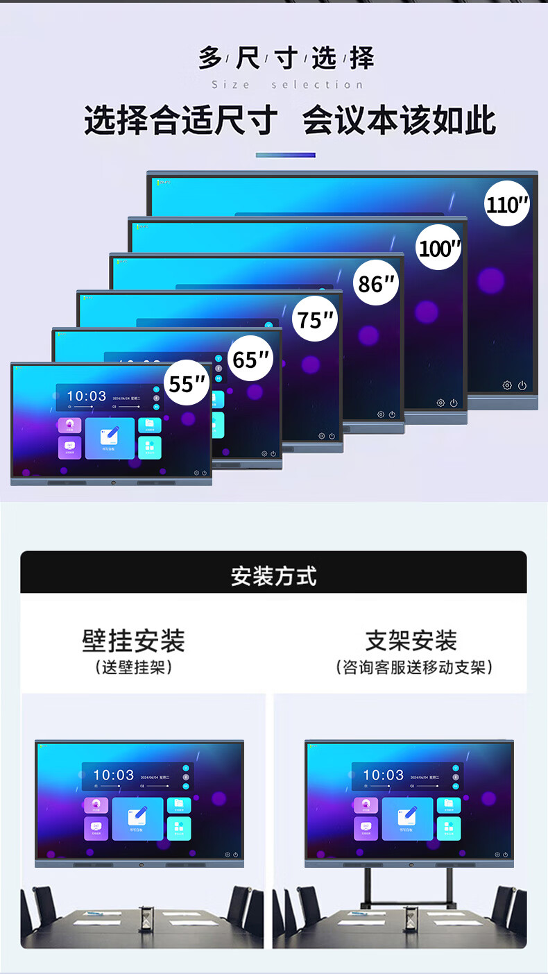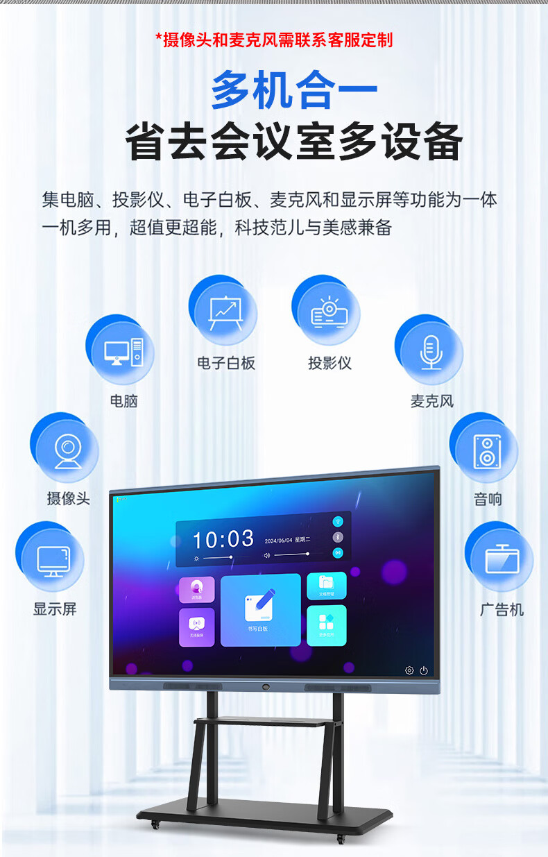 希沃教学一体机多媒体白板100英寸4K超高清触摸屏远程会议教学大屏办公平板无线投屏兼容学校培训 【会议顶配】安卓12/4+32/4K高清显示 55英寸触摸屏一体机/3-5人+移动推车