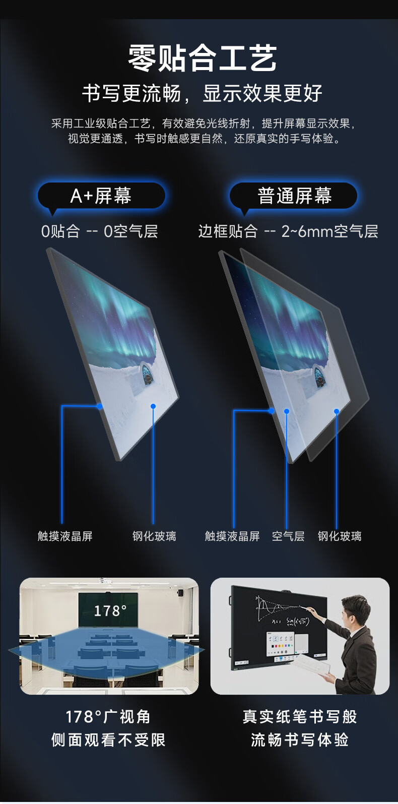 希沃电子交互白板教学会议平板一体机4k多媒体触控屏触摸屏的触屏 65英寸送推车+安装 【单安卓】8+128G