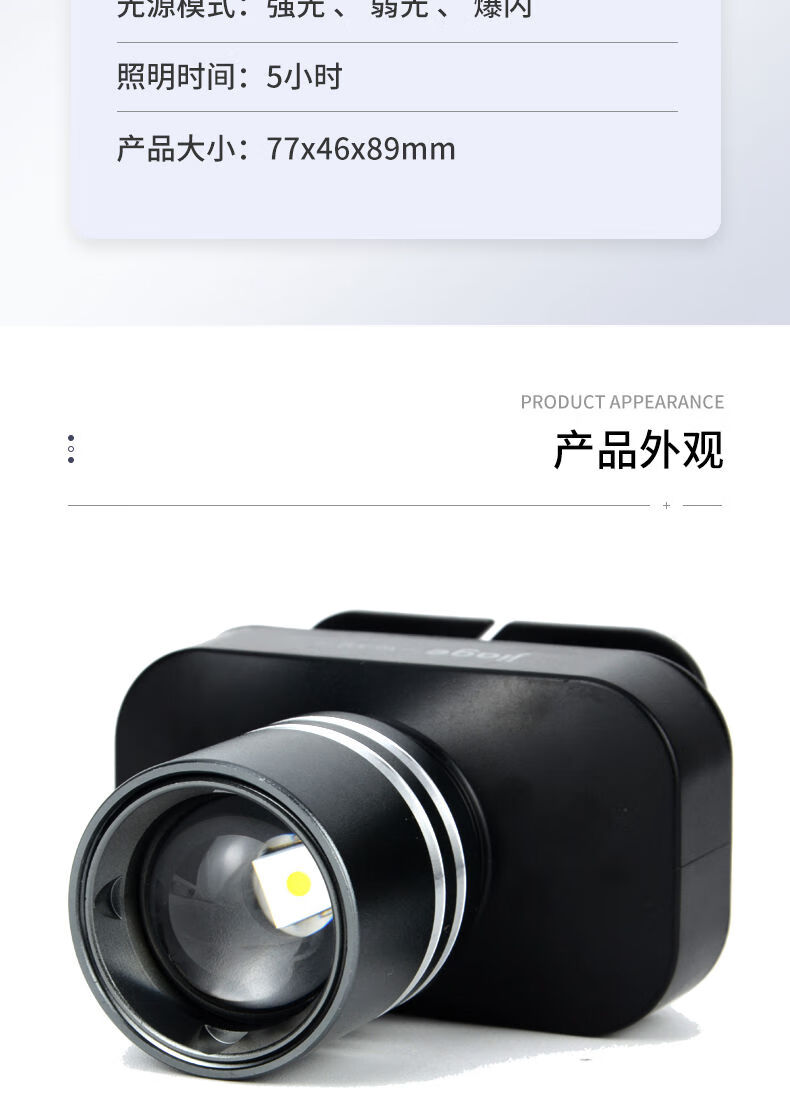 佳格701可变焦E强光照明头灯亮可充电头戴式特亮手电筒便携式 701E戴式特亮手电筒便携式