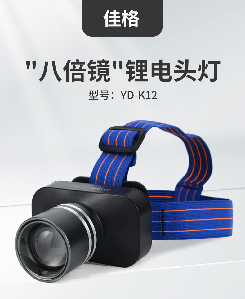 佳格YK12八倍镜调焦强光远射亮头戴式头灯TypeC激光灯珠 Y-K12戴式头灯Ty-C激光灯珠