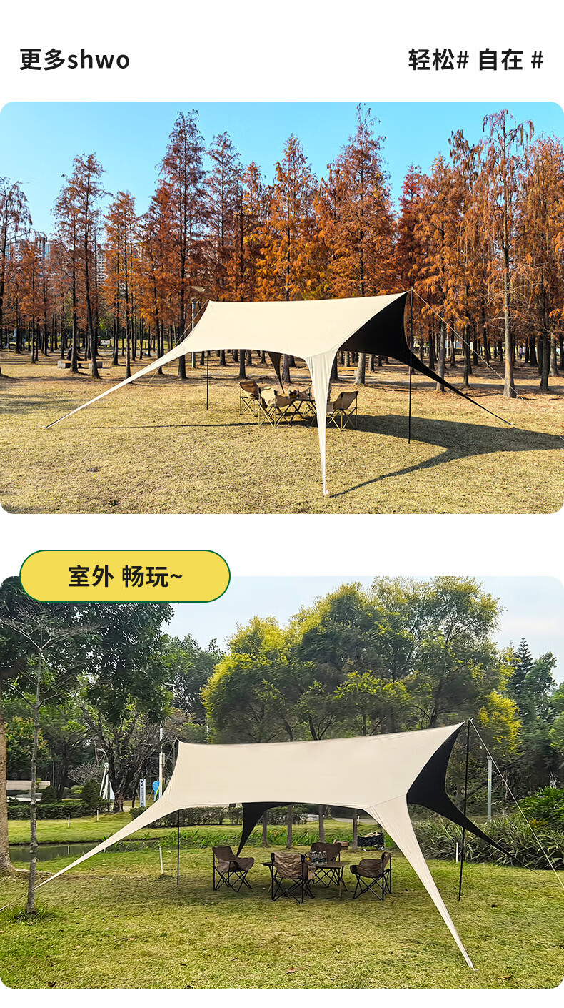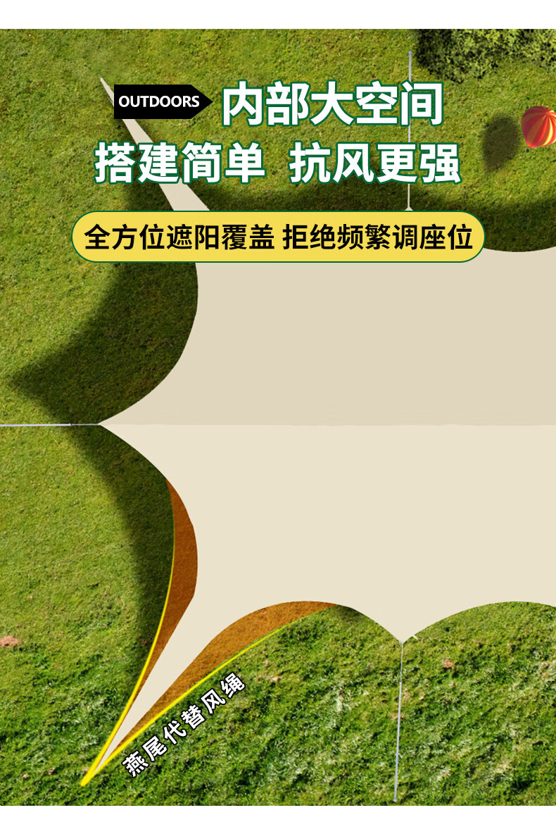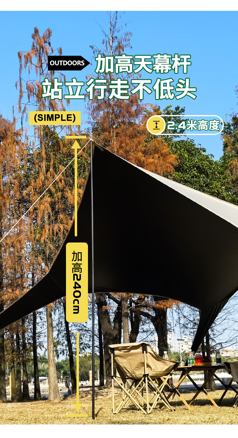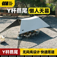 探险者无风绳免搭建懒人Y杆黑胶天幕遮阳棚防晒户外露营装备全套 Y杆燕尾大号