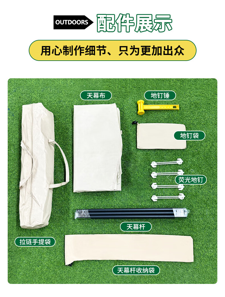 天幕收到了,布料厚实,买的黑胶款,阳光下试了下,遮阳效果不错