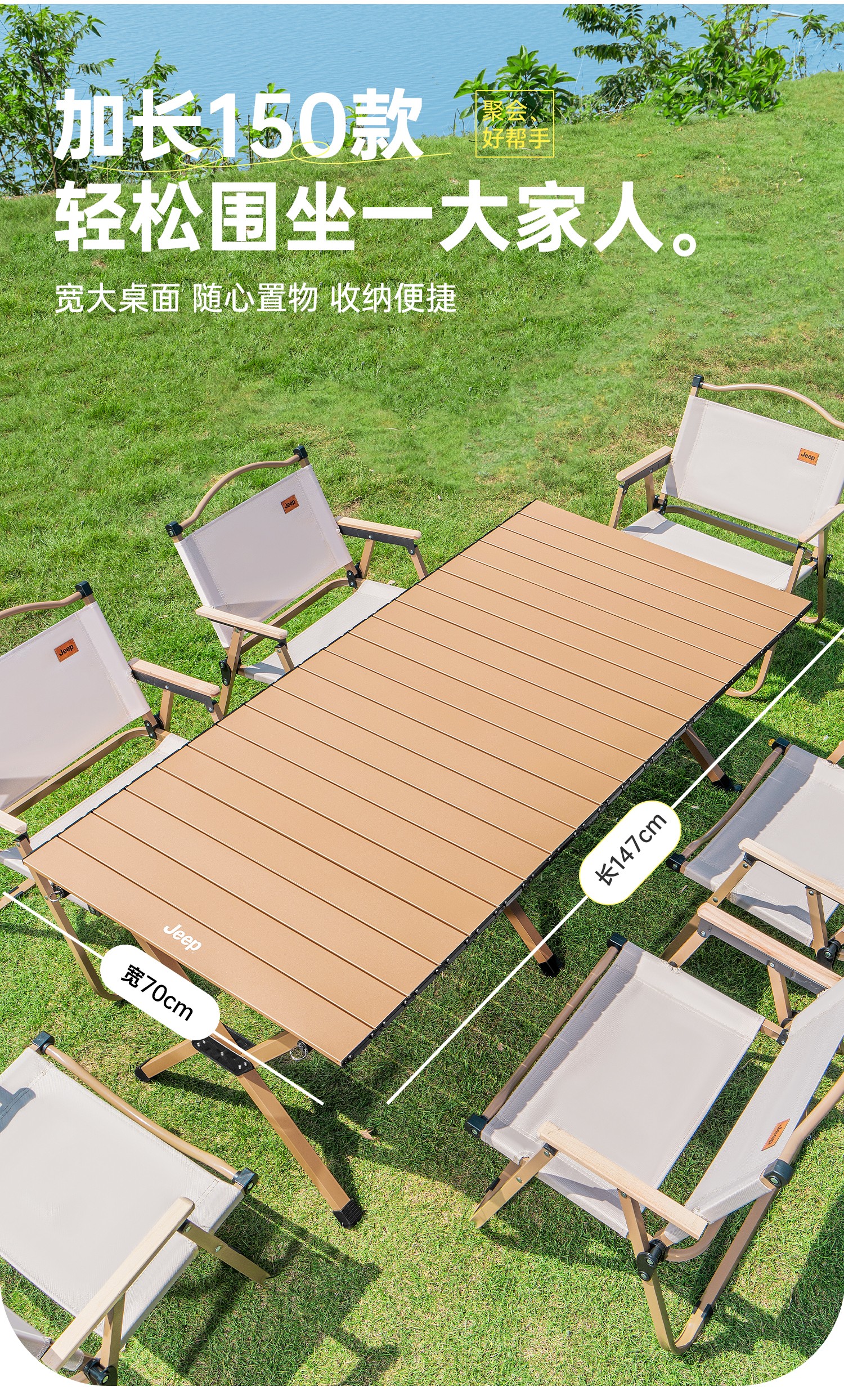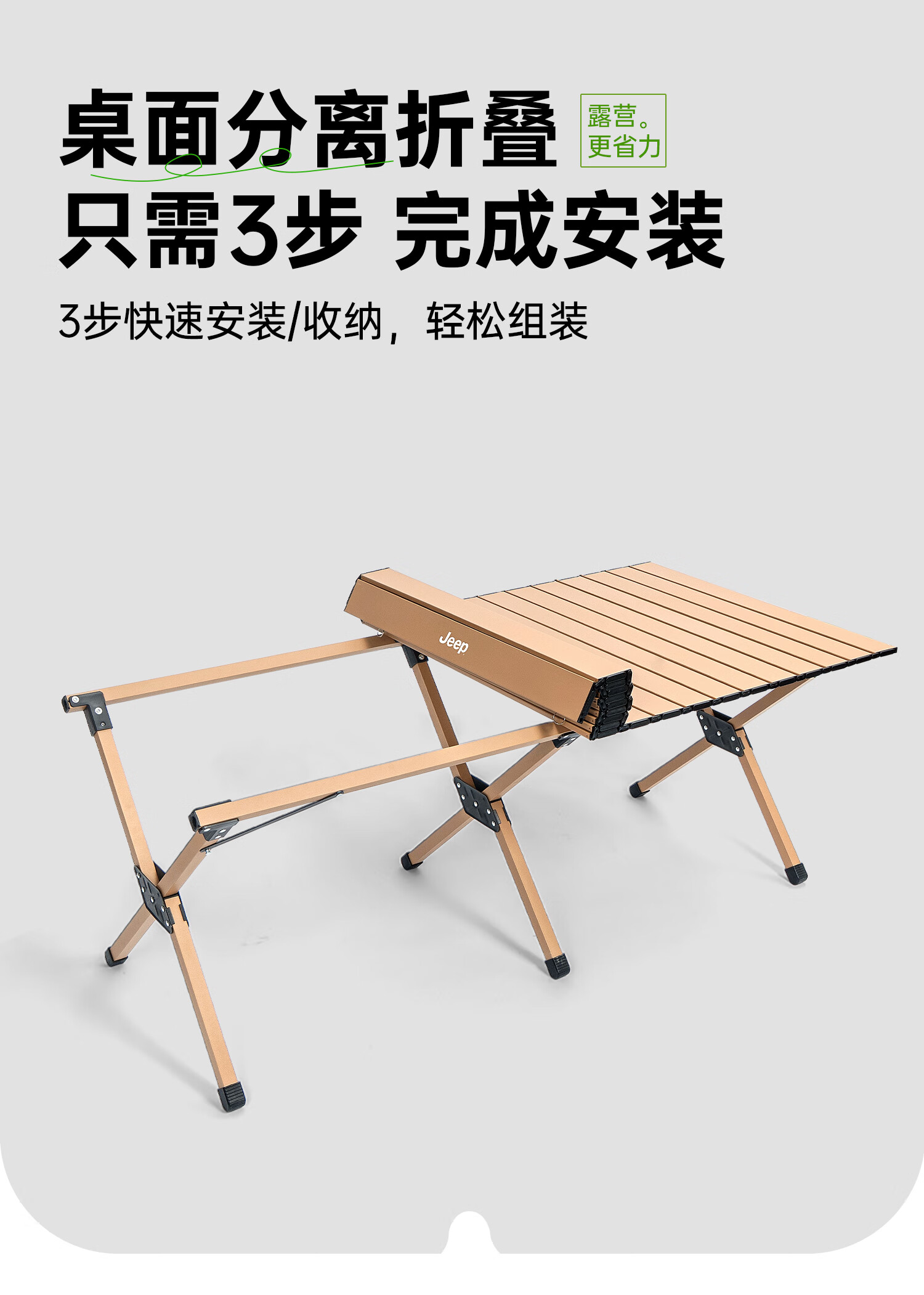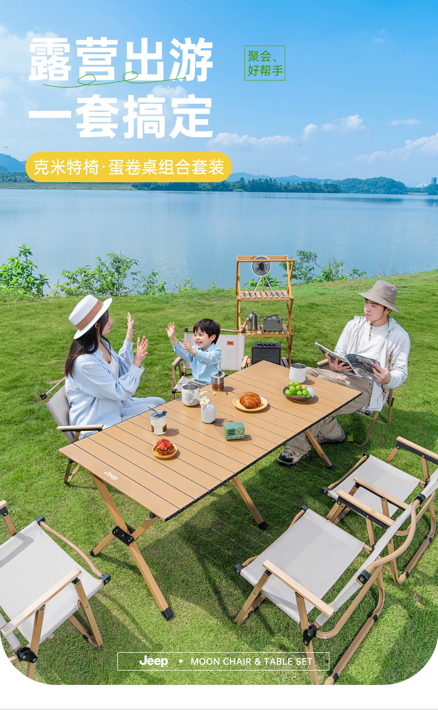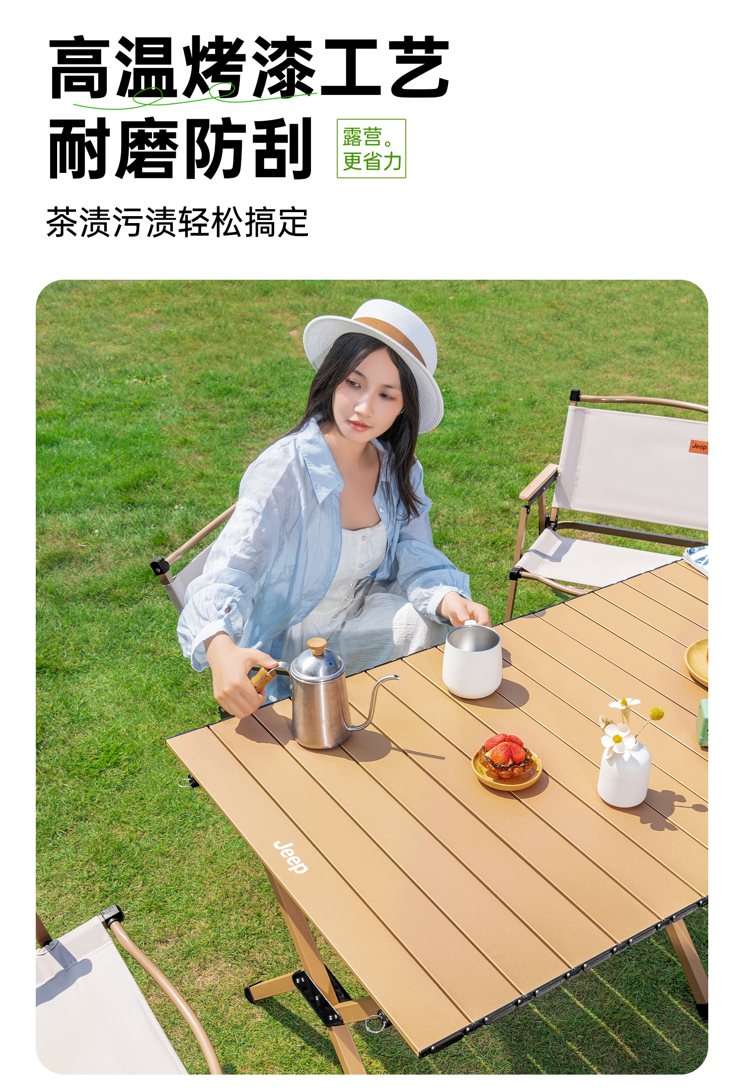 JEEP户外折叠桌椅套装便携蛋露营野餐轻量家用蛋卷桌 【60cm长】【45cm高】木纹色