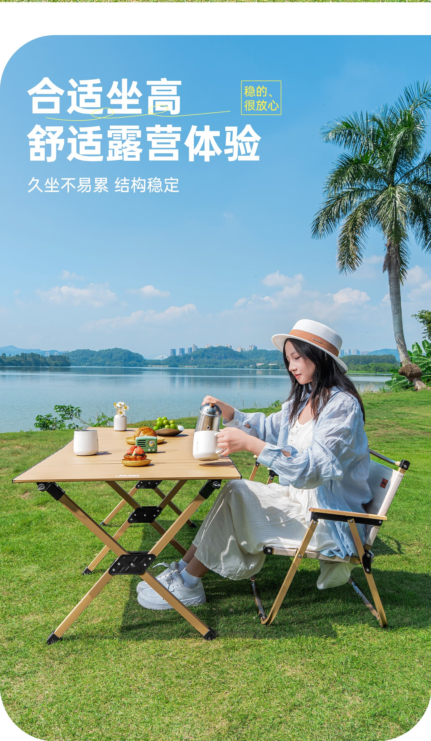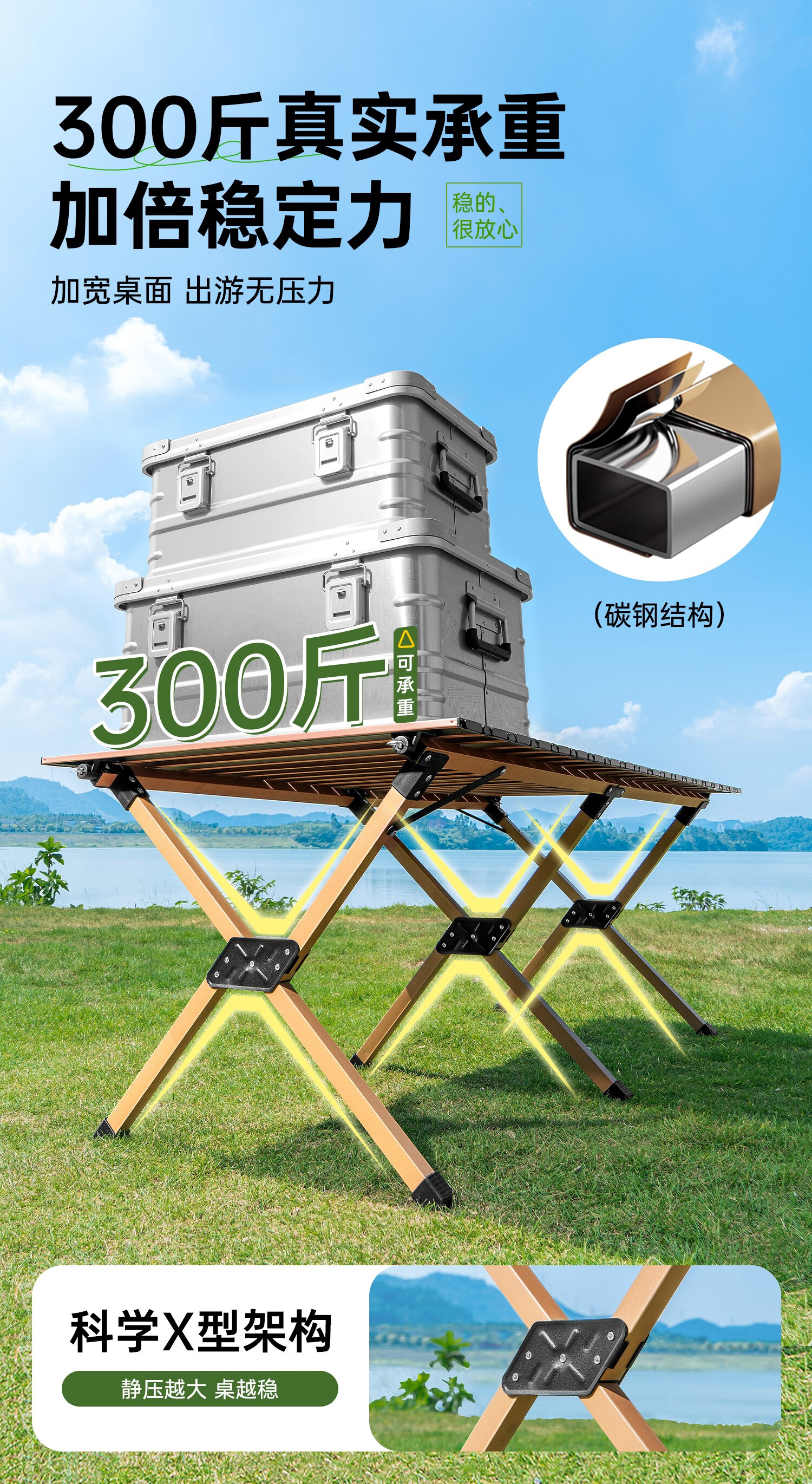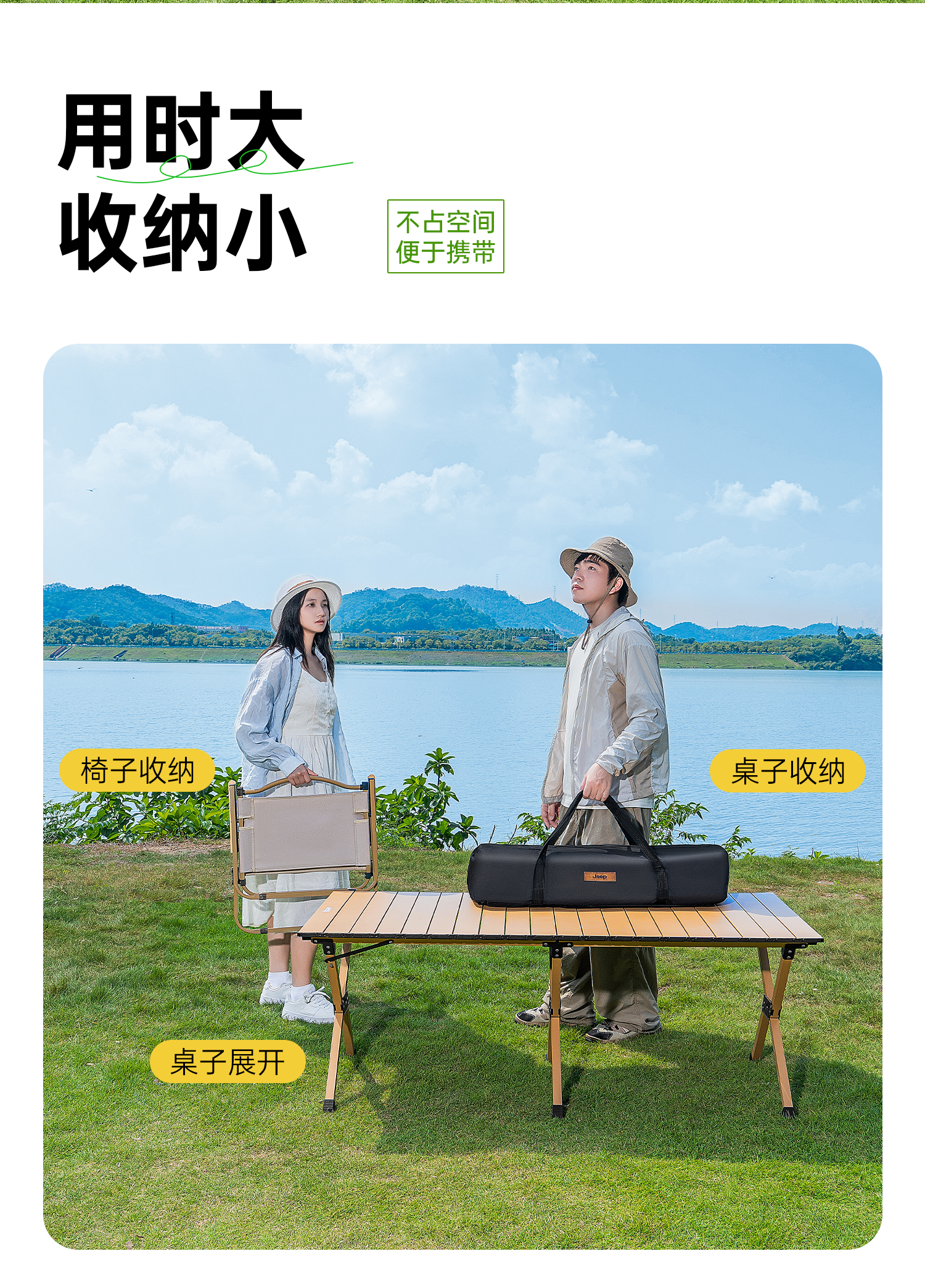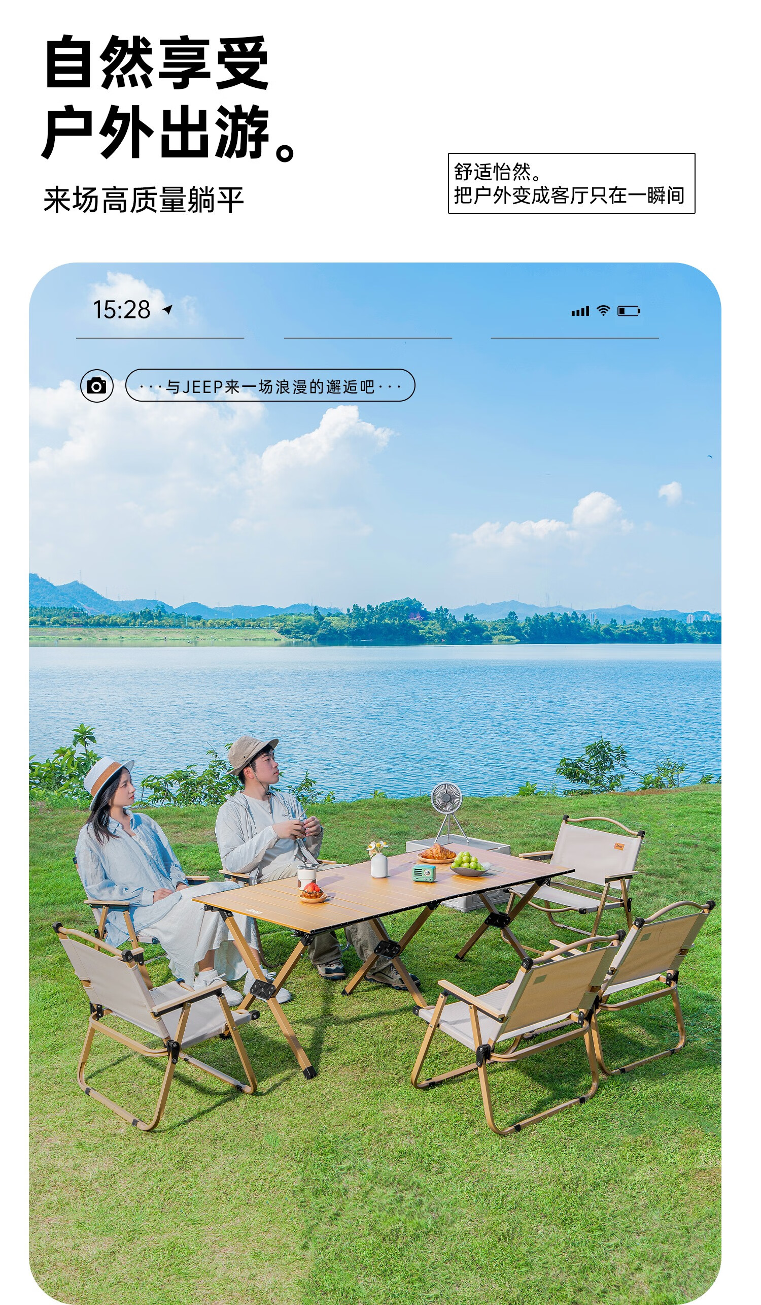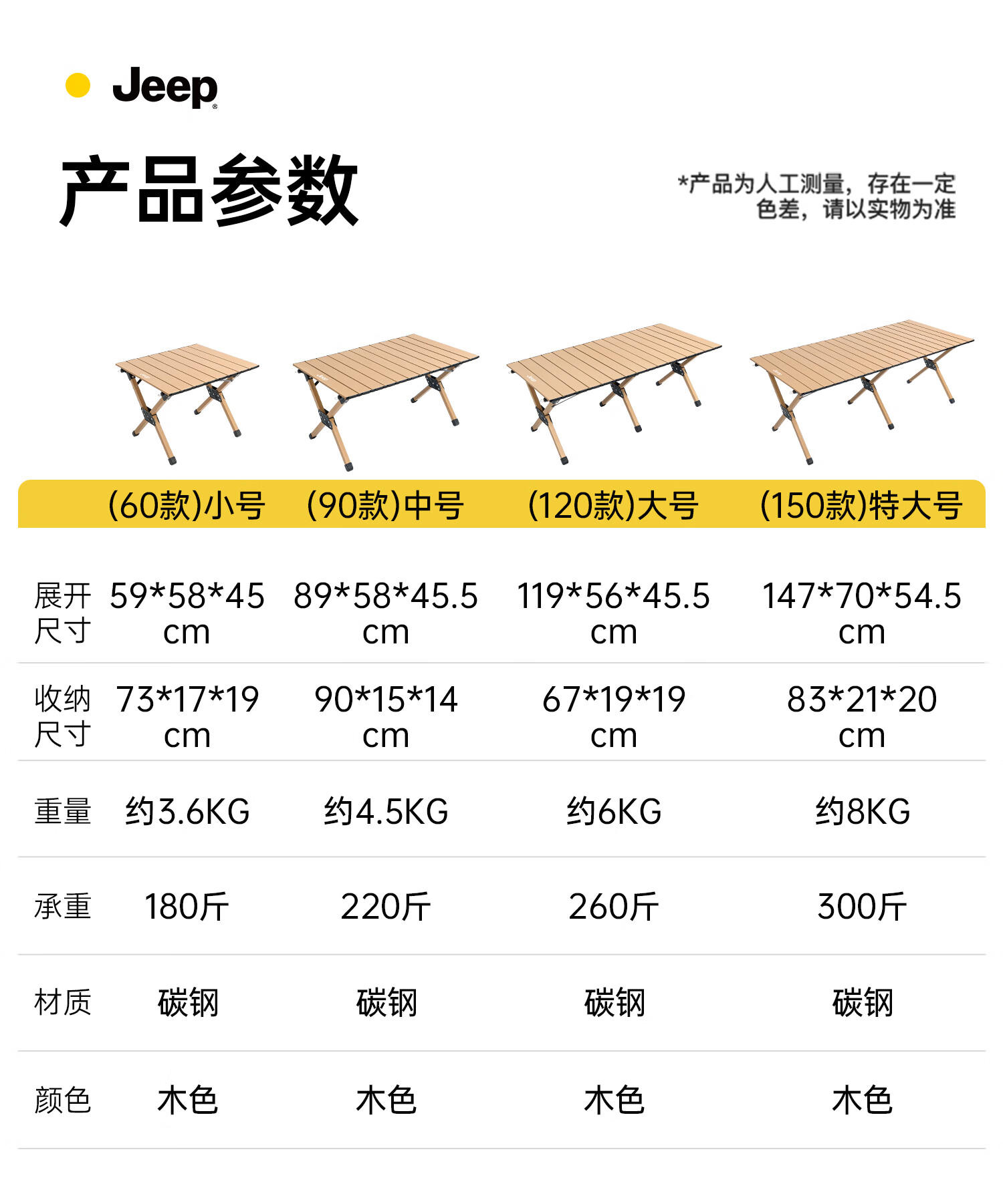JEEP户外折叠桌椅套装便携蛋露营野餐轻量家用蛋卷桌 【60cm长】【45cm高】木纹色