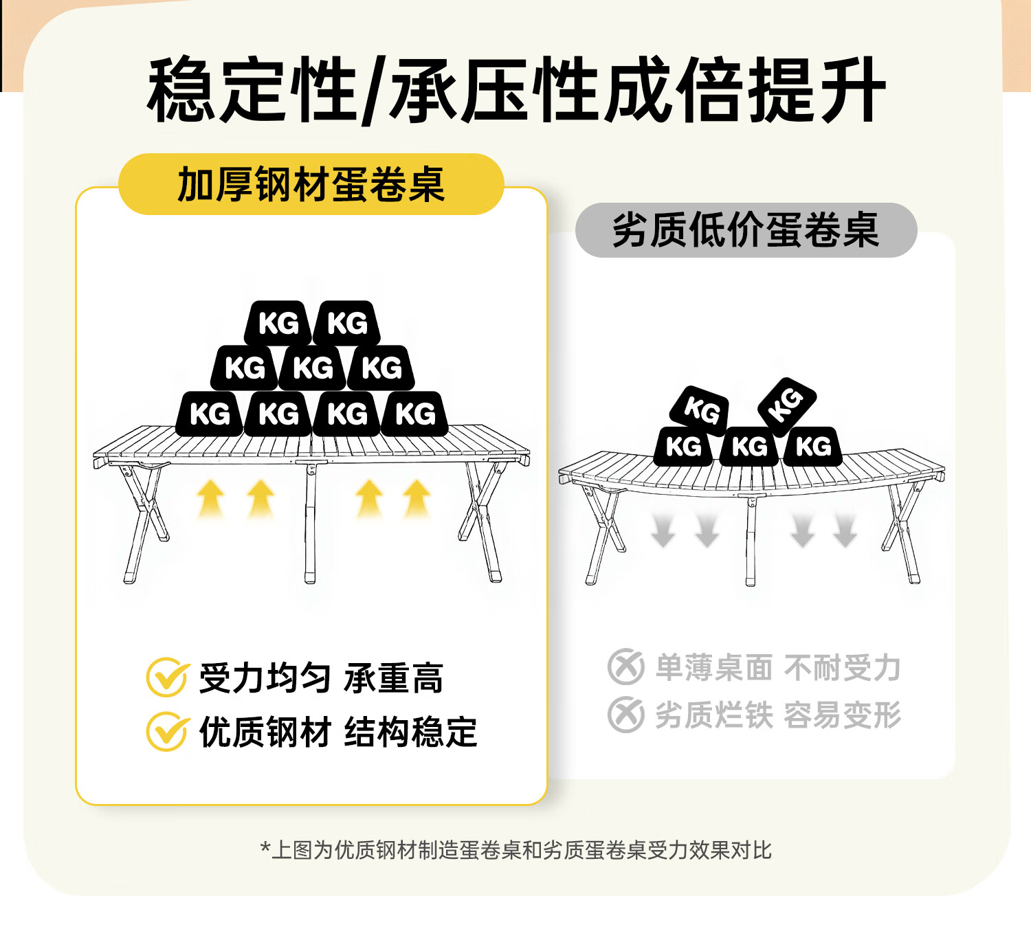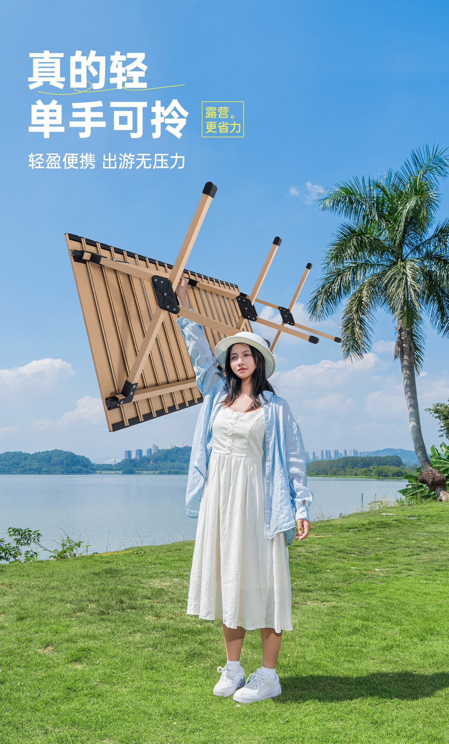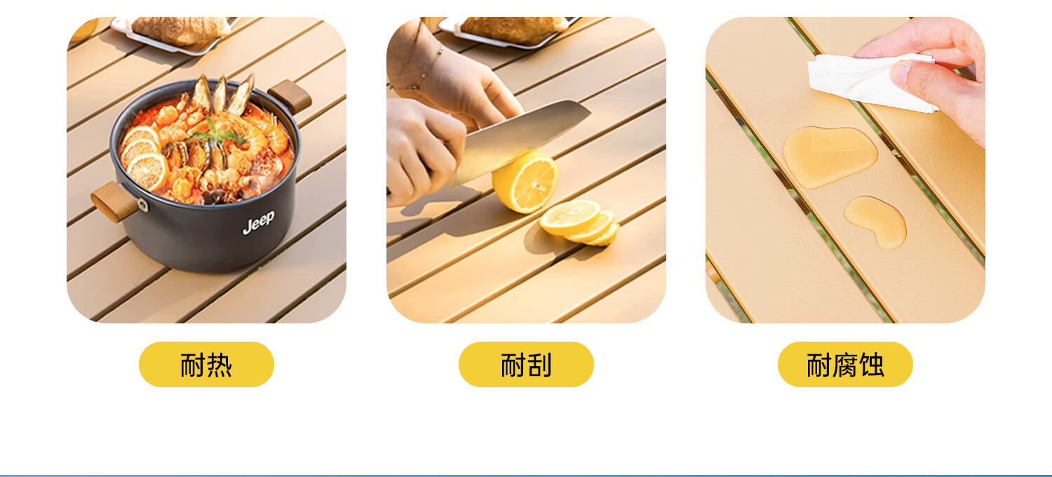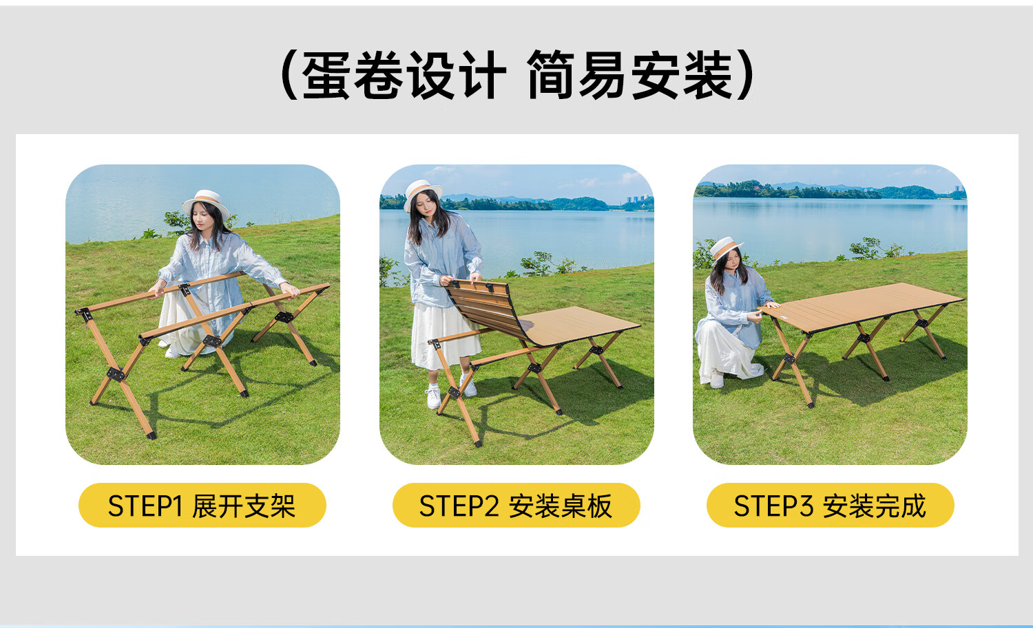 JEEP户外折叠桌椅套装便携蛋露营野餐轻量家用蛋卷桌 【60cm长】【45cm高】木纹色