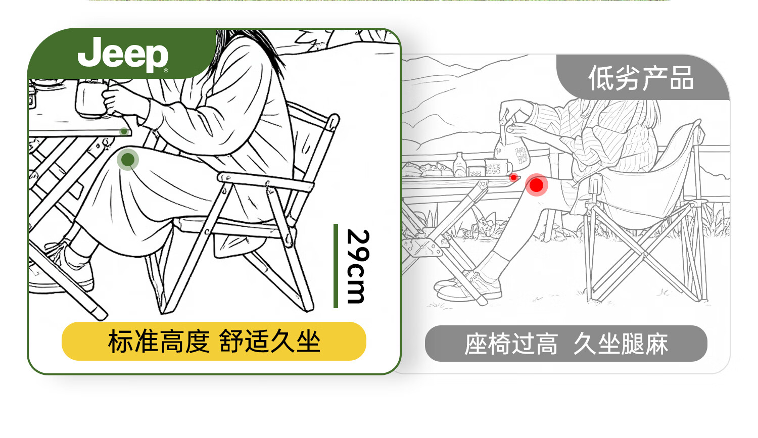 JEEP户外折叠桌便携式露营桌子野餐桌椅套装野营用品装备蛋卷桌 [2-4]人加大加厚黑色方桌