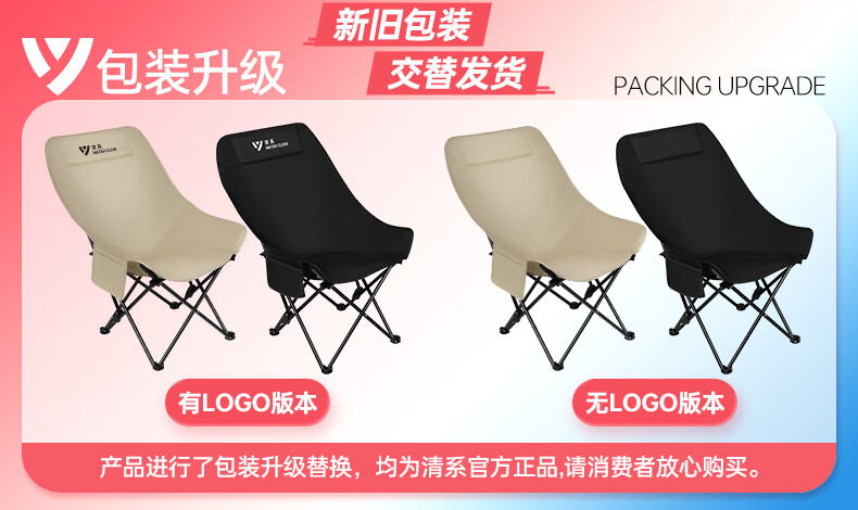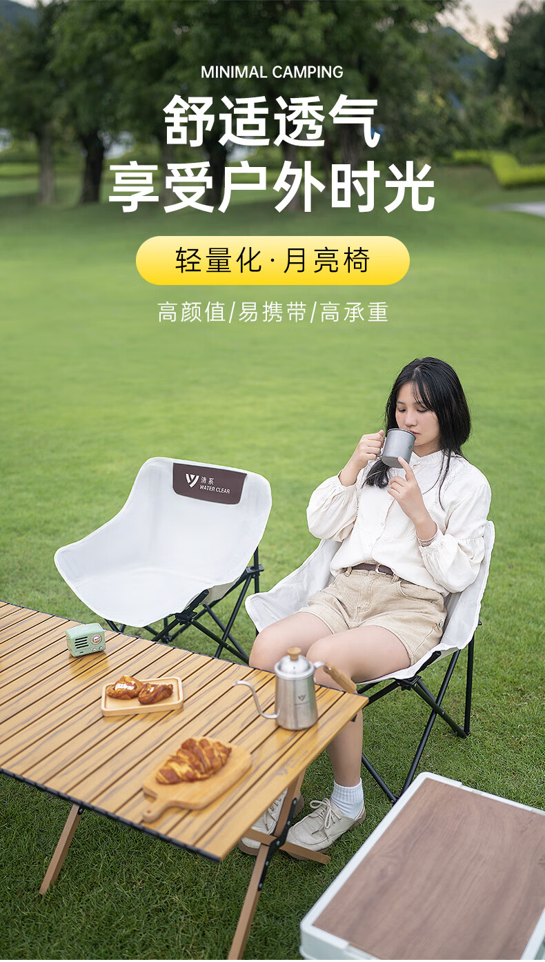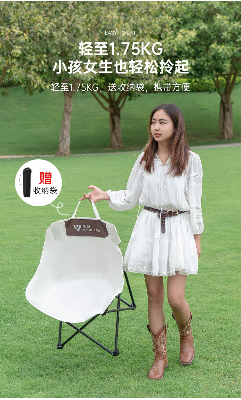 清系折叠椅户外露营便携靠背钓鱼椅懒人椅家庭休闲月亮椅旅游旅行椅 升级款黑色月亮椅【加粗管材】