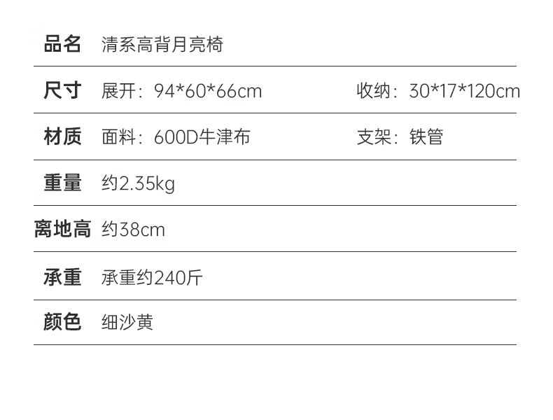 牧高笛(MOBIGARDEN)实木椅 户外露营野餐便携可拆卸实木折叠高躺椅云逸 象牙白
