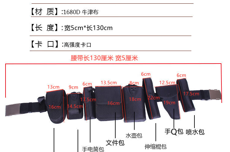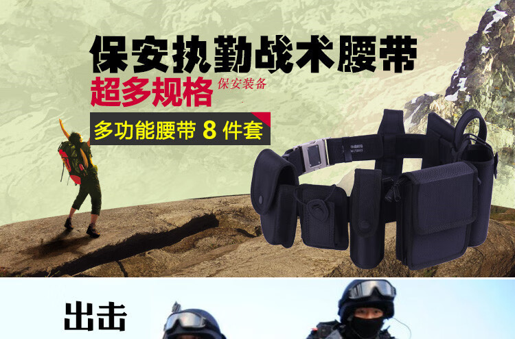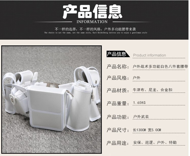 保安八件套战术腰带巡逻装备8大件老标8件套多功能腰带黑色白色 白色