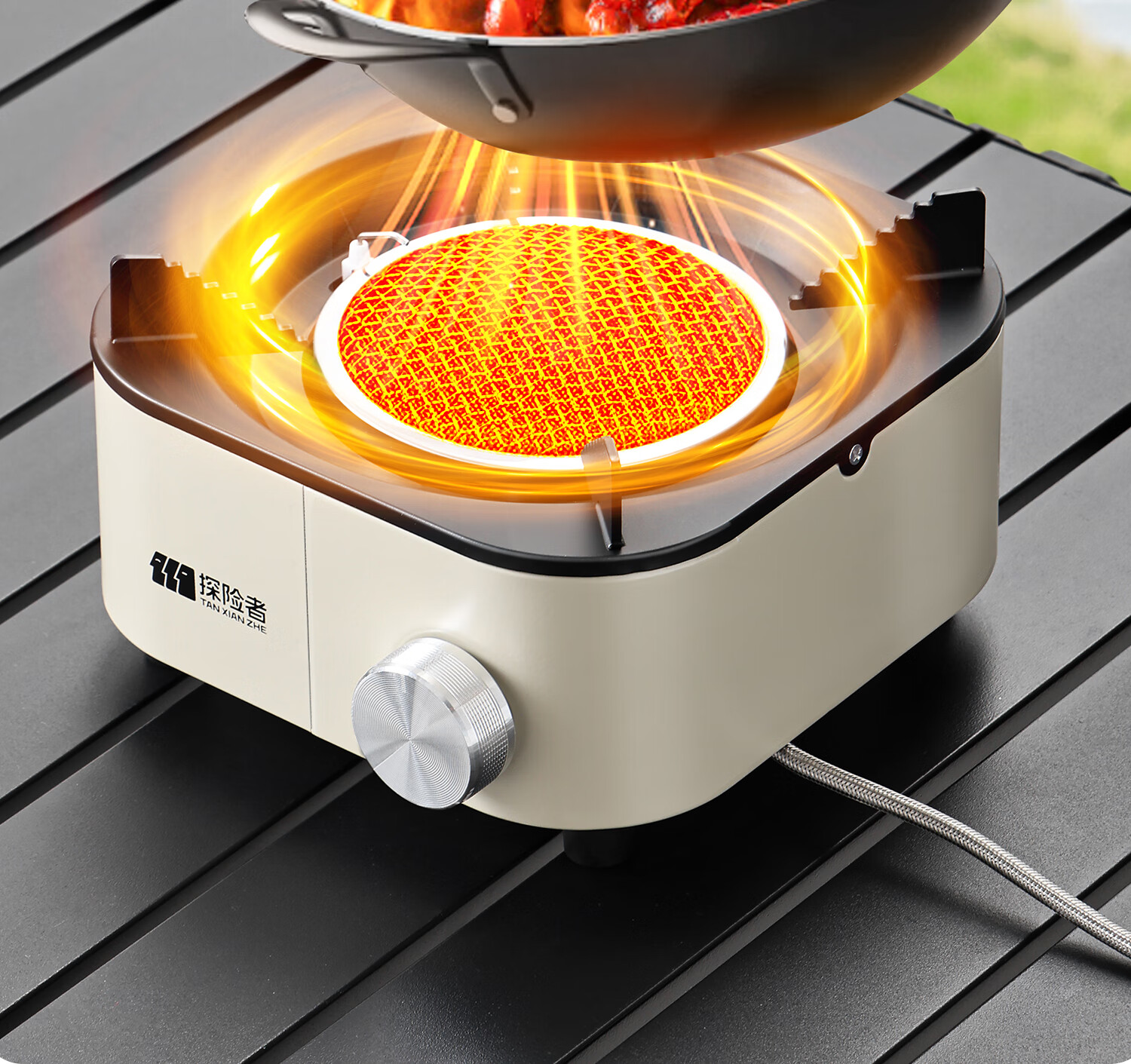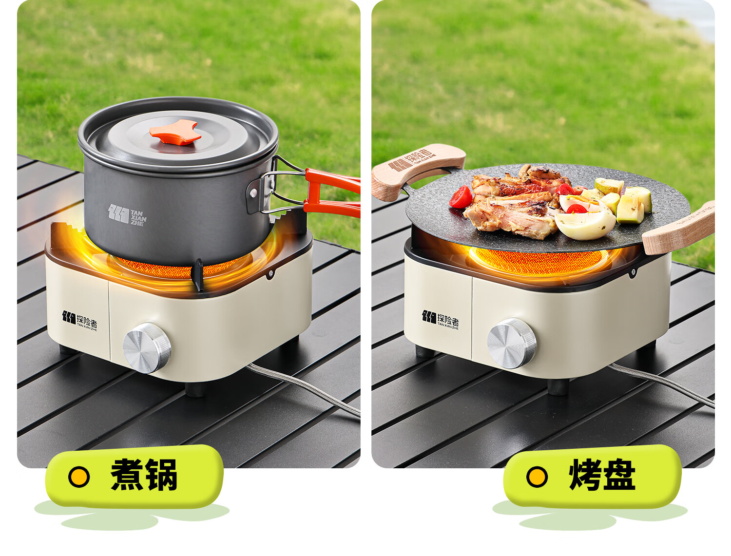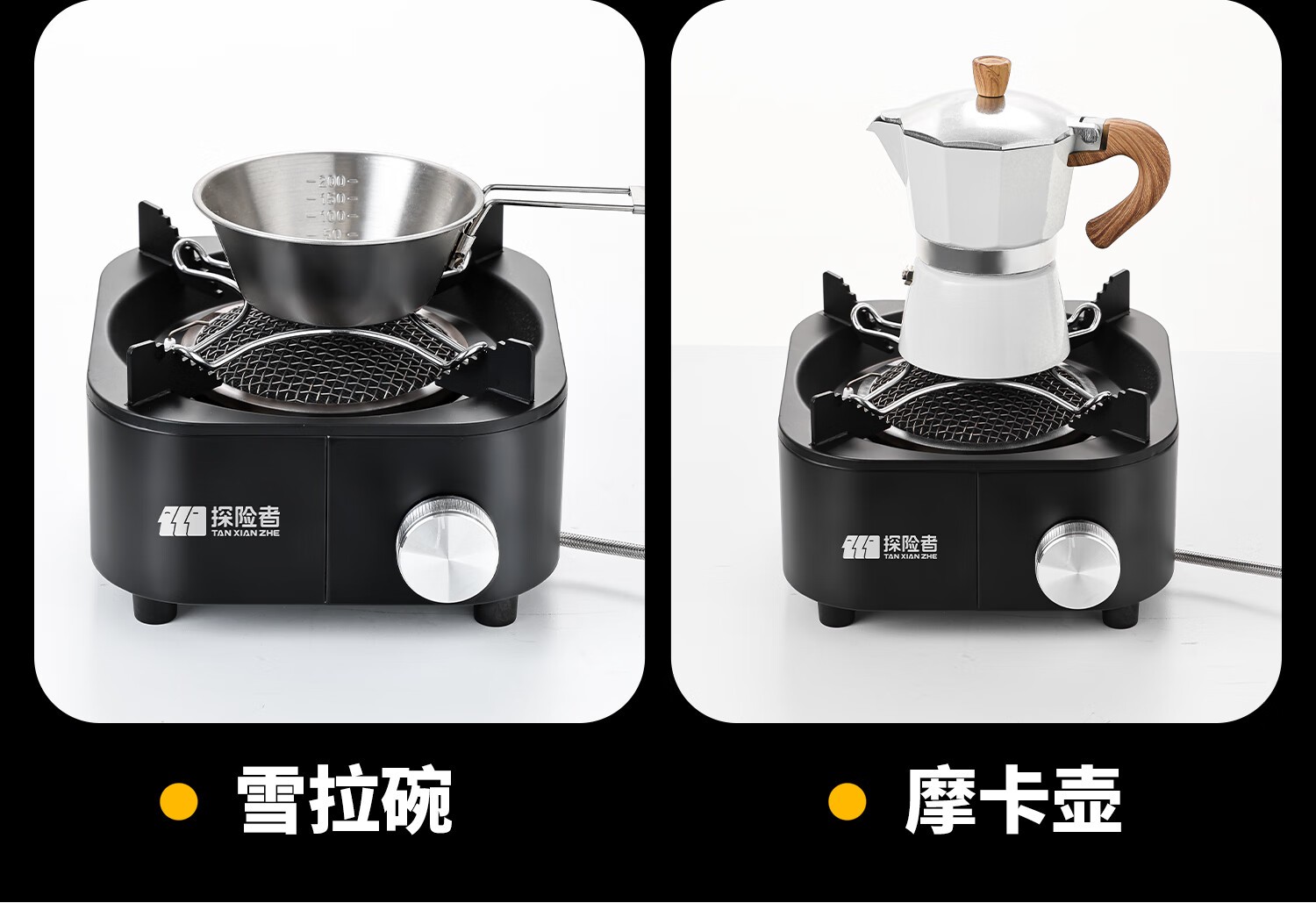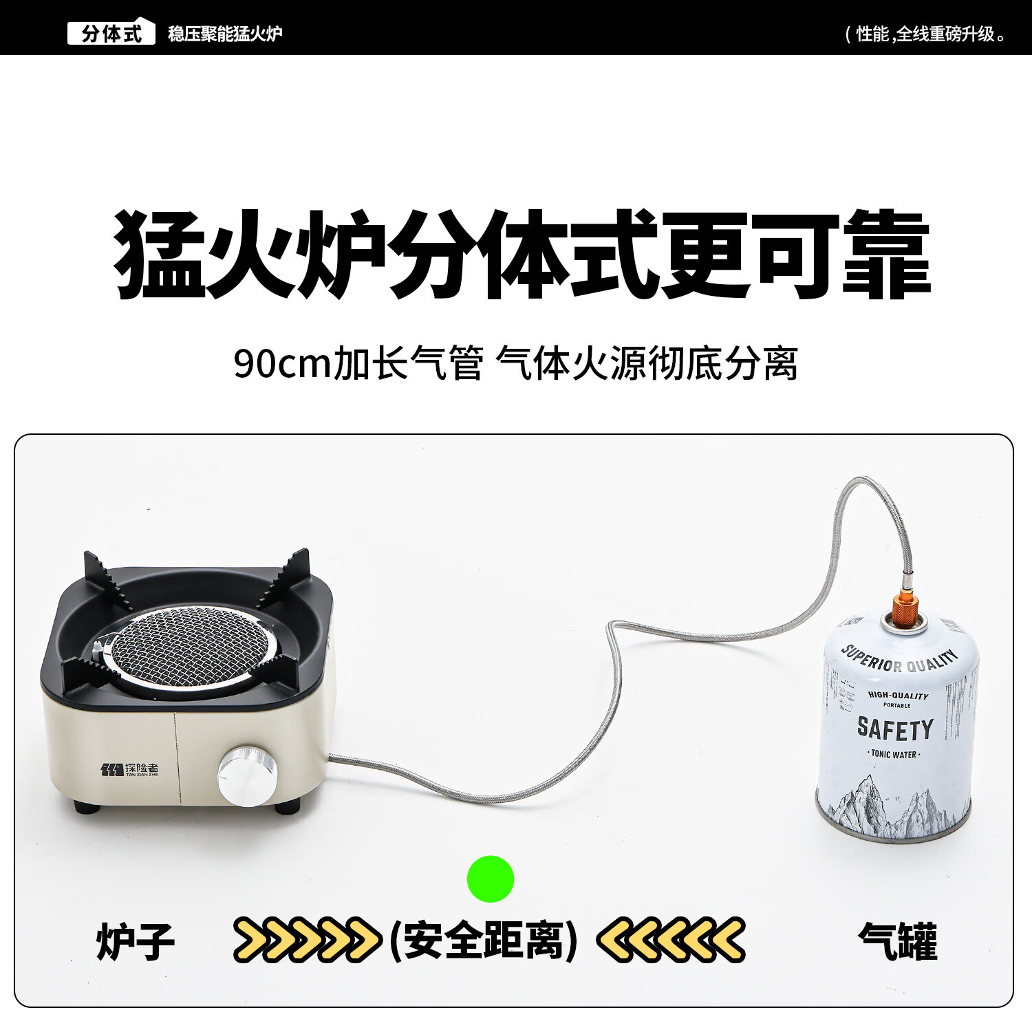 探险者卡式炉评价 探险者卡式炉是露营利器,分体式设计让气罐与炉头分离更安全,带稳压装置防倾倒蹿火。双核炉头火力强劲,配防风罩不惧户外阵风,一键点火操作简单。收纳小巧,适配多规格气罐,家用户外皆可用。