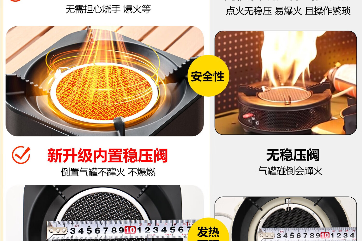 方便携带,质量还特别好,小巧,火力很猛,管子与罐之间的距离保证了安全。卖家服务态度特别好,有问必答,回复速度很快。快递也也别给力。推荐购买。很不错的户外野炊产品。