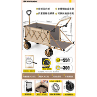 疆屿户外露营车便携折叠营地推车野营拉车摆摊快递拖车儿童可躺拉车 卡其聚拢MAX拖斗推拉一体