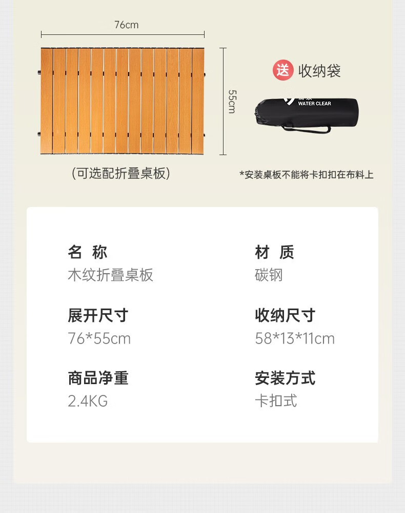 清系便携式露营桌子野餐可折叠克米特椅野营用品装备户外折叠桌蛋卷桌 桃木色特大号120款