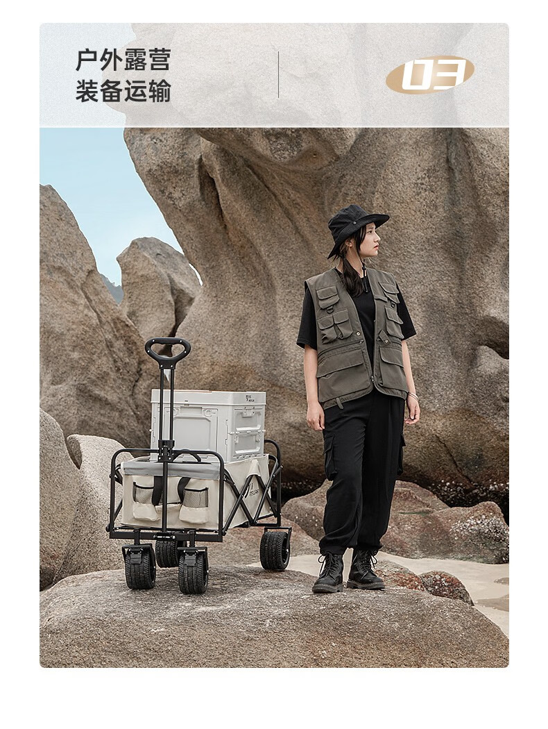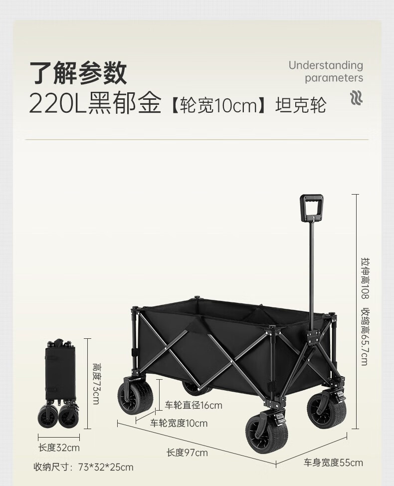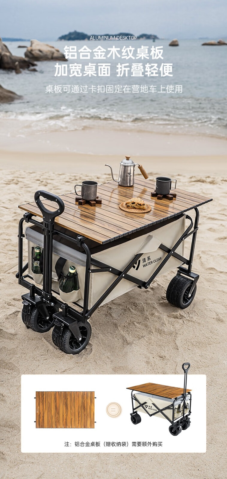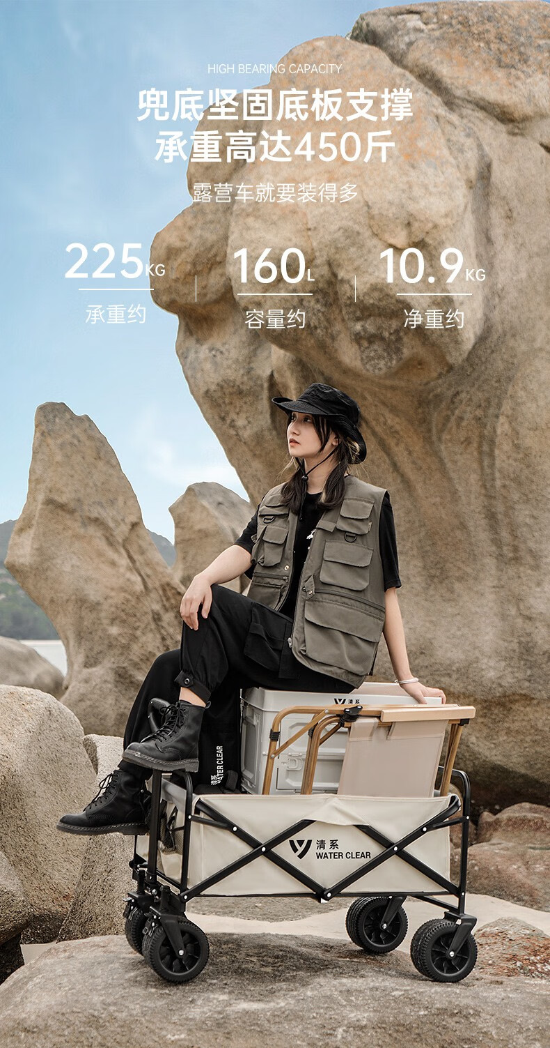清系 户外露营折叠车野餐车营地车露营装备便捷拖车推车购物旅游买菜 180L 有刹车 黑色越野轮