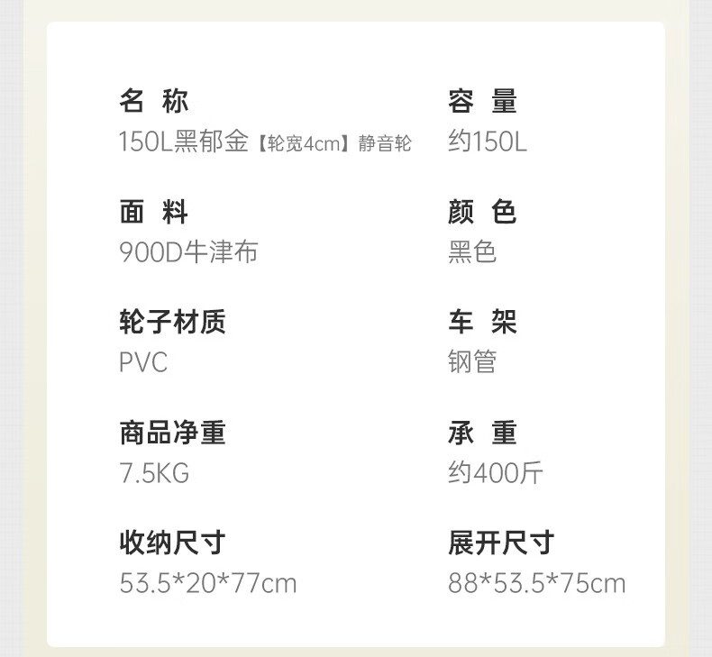 这车子和图片上的不一样,没有这180L,里面的垫子太小了不合适!这次购物体验太差!还没有收纳带,质量差!
