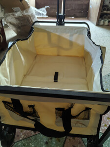 包裹分了三次,第一次是桌板,问了客服说分开寄的,所以按要求到达的只有桌板,车子晚了一两天,车子到了后发现只有空车架,没有那个兜子,联系客服补发了车袋子,收到货就晚了一周了,桌板和车架子质量还行,车袋子特别差,就是最烂的那种布,不柔软,用起来格拉格拉响,而且比较薄,很担心用两回就烂了,车子的轮子只有两个万向轮,另外两个是固定的,拉手不能回弹,松手就倒,可能是规格不同吧,反正我这个规格的是这样子的